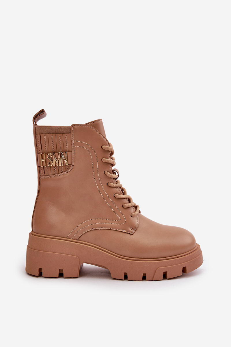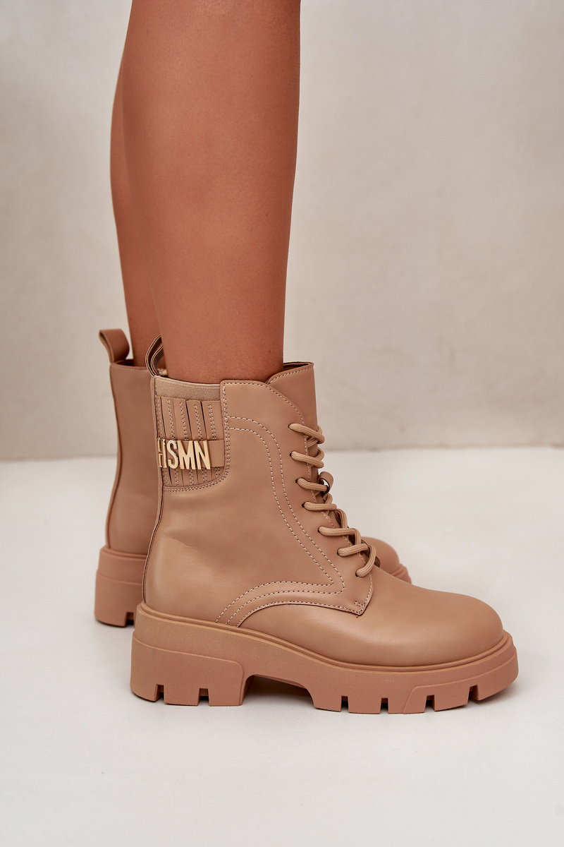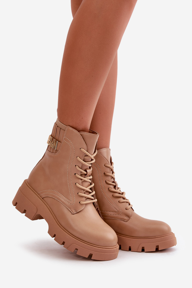 Dámské workery boty na zip šněrovací z eko kůže béžové Naolani