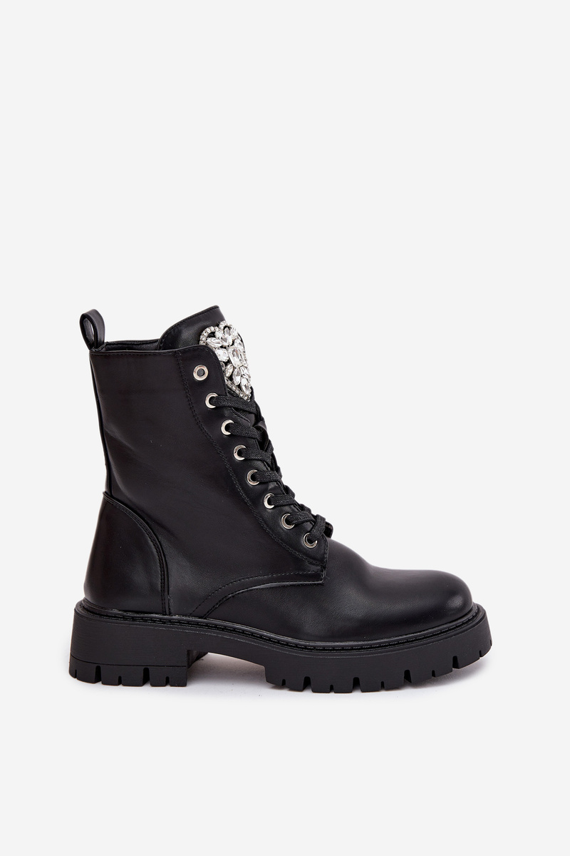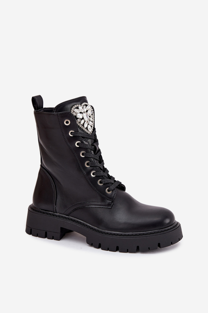 Dámské boty z eko kůže jsou roztomilým návrhem spojujícím pohodlí s módním detailem. Model se šněrováním a zipem zajišťuje snadné nazouvání a dokonalé přizpůsobení noze, ozdobné srdce s krystaly na jazyku dodává jemný, ženský lesk, skvěle doplňuje každodenní stylizace. Při výběru velikosti se řiďte tabulkou velikostí. Při výběru velikosti se řiďte tabulkou velikostí.
