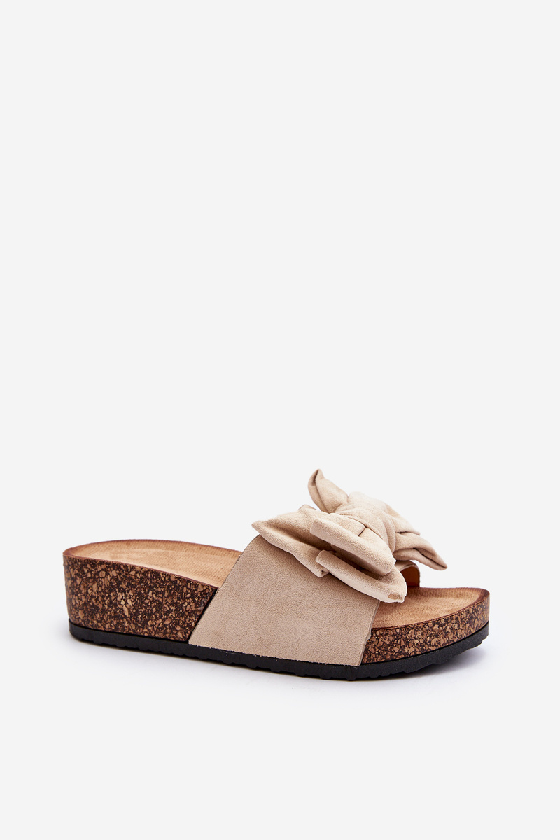 Dámské žabky na korkové platformě s mašlí Beige Tarena