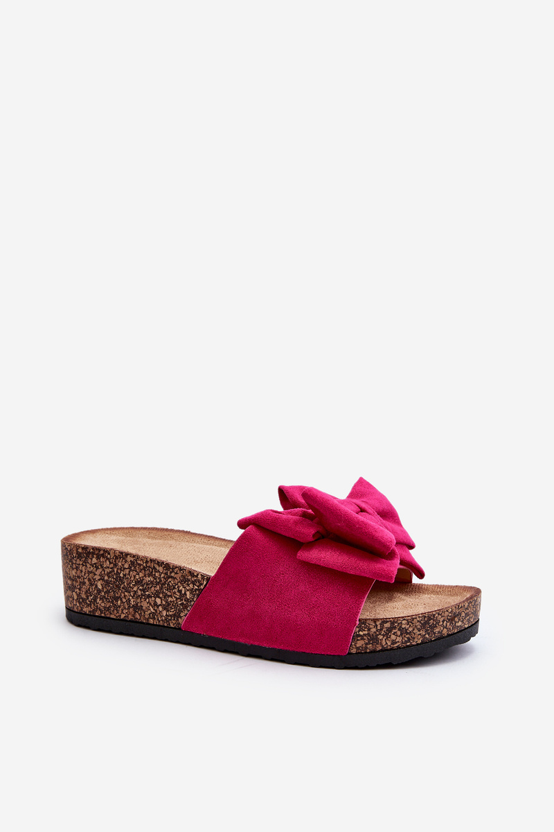 Dámské žabky na masivní korkové platformě s mašlí Fuksja Tarena
