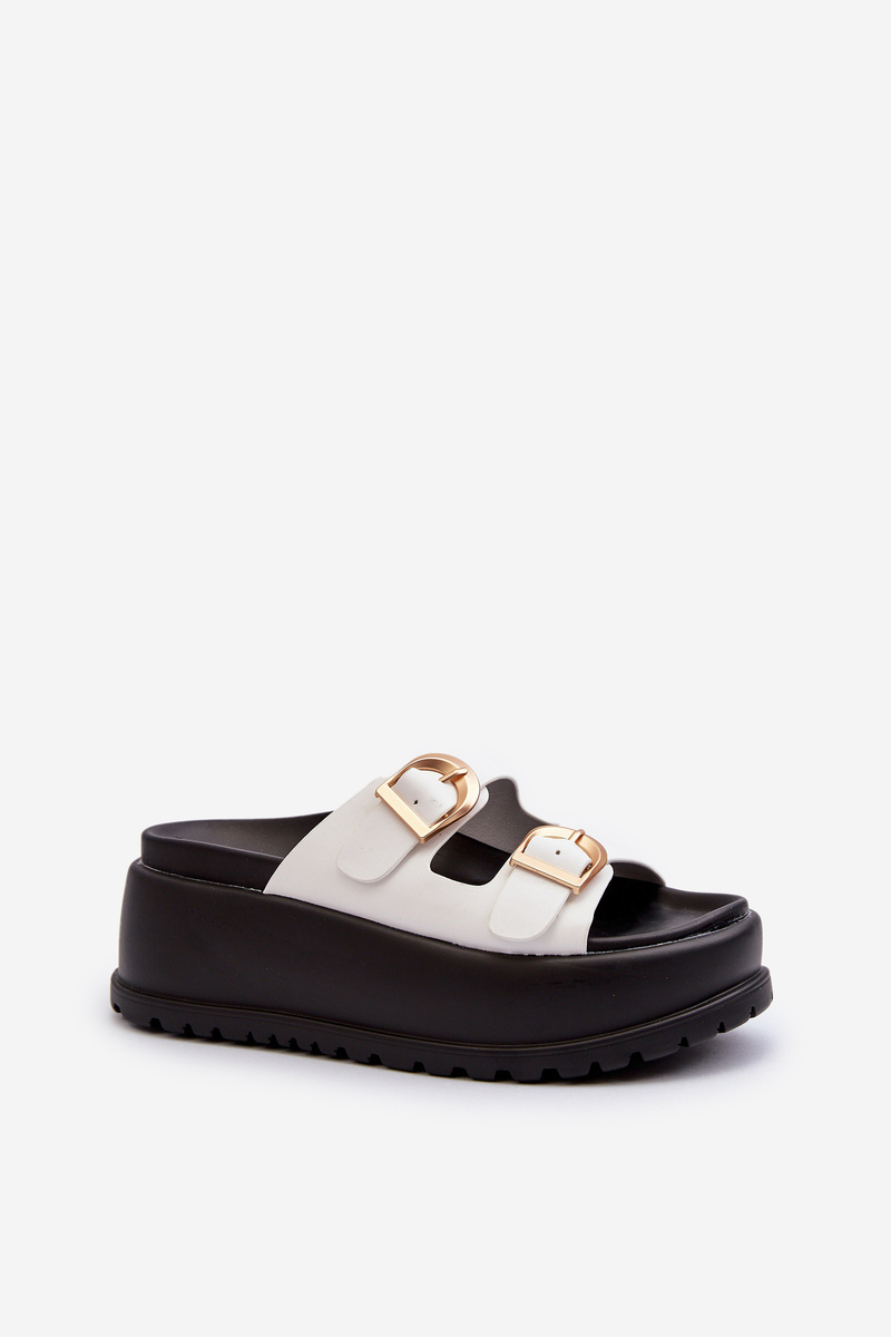 Dámské klouzačky na mohutné platformě jsou ideální volbou pro ty, kteří chtějí spojit pohodlí s moderním stylem. Vyrobené z ekokůže. Nastavitelné popruhy s přezkami vám umožní snadno je přizpůsobit šířce nohy. Platforma poskytuje stabilitu a pohodlí po celý den. Skvělé na letní procházky nebo večerní vycházky. Při výběru velikosti se řiďte tabulkou velikostí.