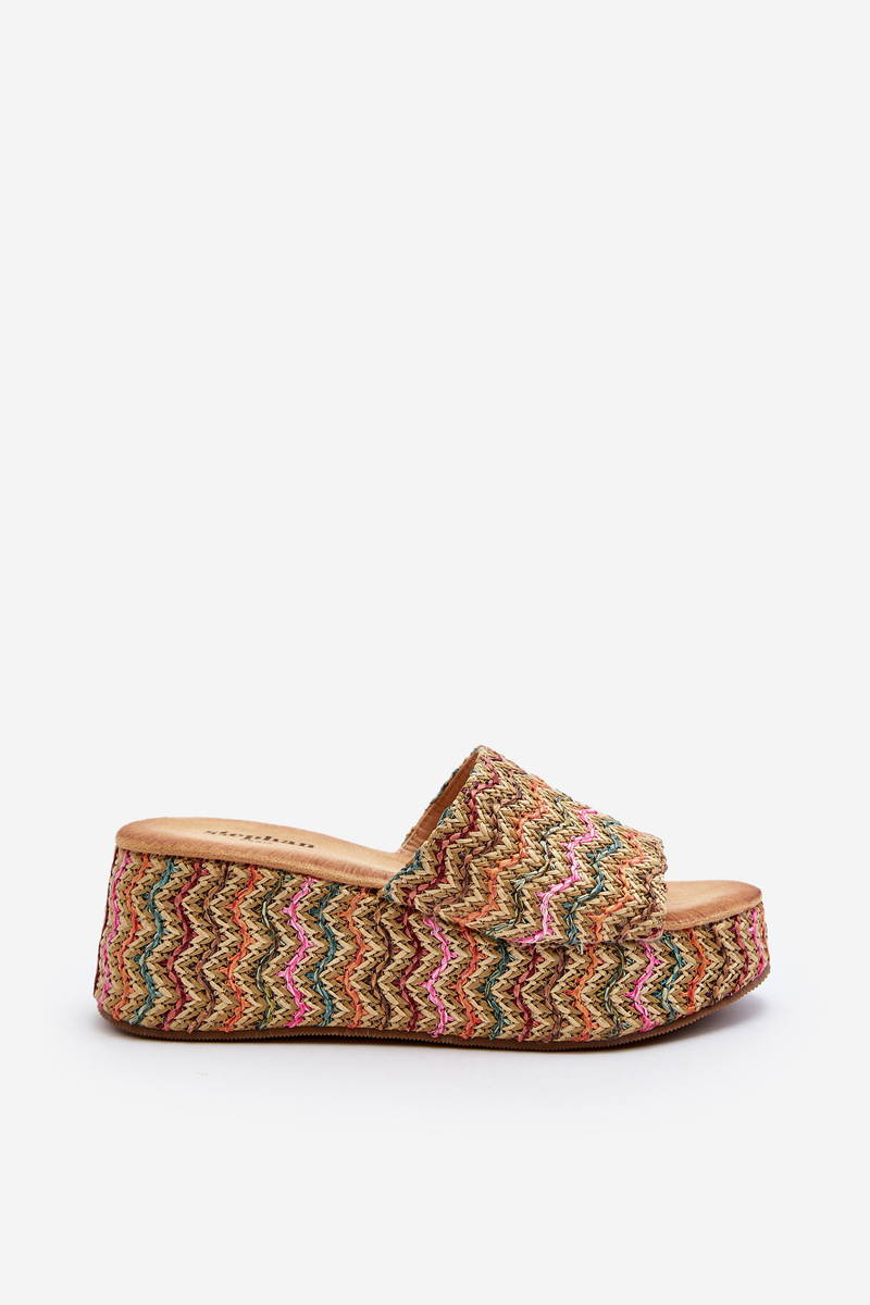 Klasické dámské žabky jsou posazeny na masivní platformě a klínovém podpatku, které jsou navíc zdobeny zapletenými jutovými copánky. Vyrobeno z ekologického semiše příjemného na dotek. Měkká stélka je vyrobena z eko kůže. Klasický model, nazouvací. Tyto žabky jsou skvělou volbou pro horké letní dny! Při výběru velikosti se řiďte tabulkou velikostí.