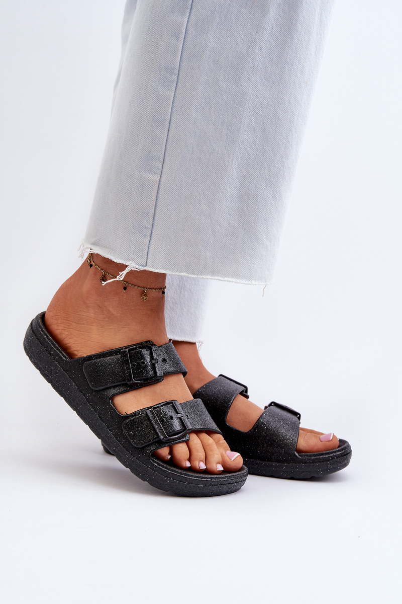 Dámské pantofle, které určitě přitáhnou pohled kvůli efektnímu dokončení s flitry. Vepředu jsou spony, které nejen zajistí stylový vzhled, ale také umožní snadné přizpůsobení k noze. Ideální na letní, večerní výlety nebo jiné příležitosti, kde chcete přidat trochu lesku a elegance do svého stylu. Při výběru velikosti se řiďte tabulkou velikostí.