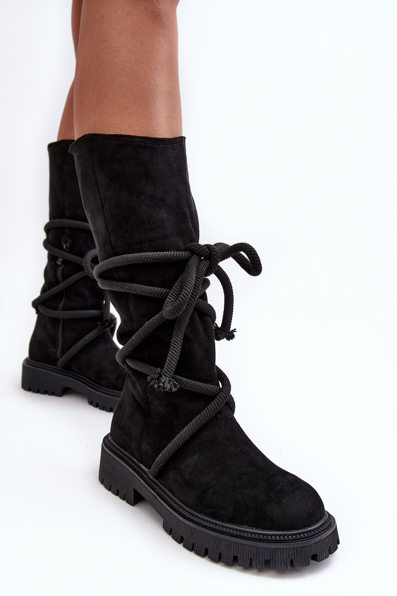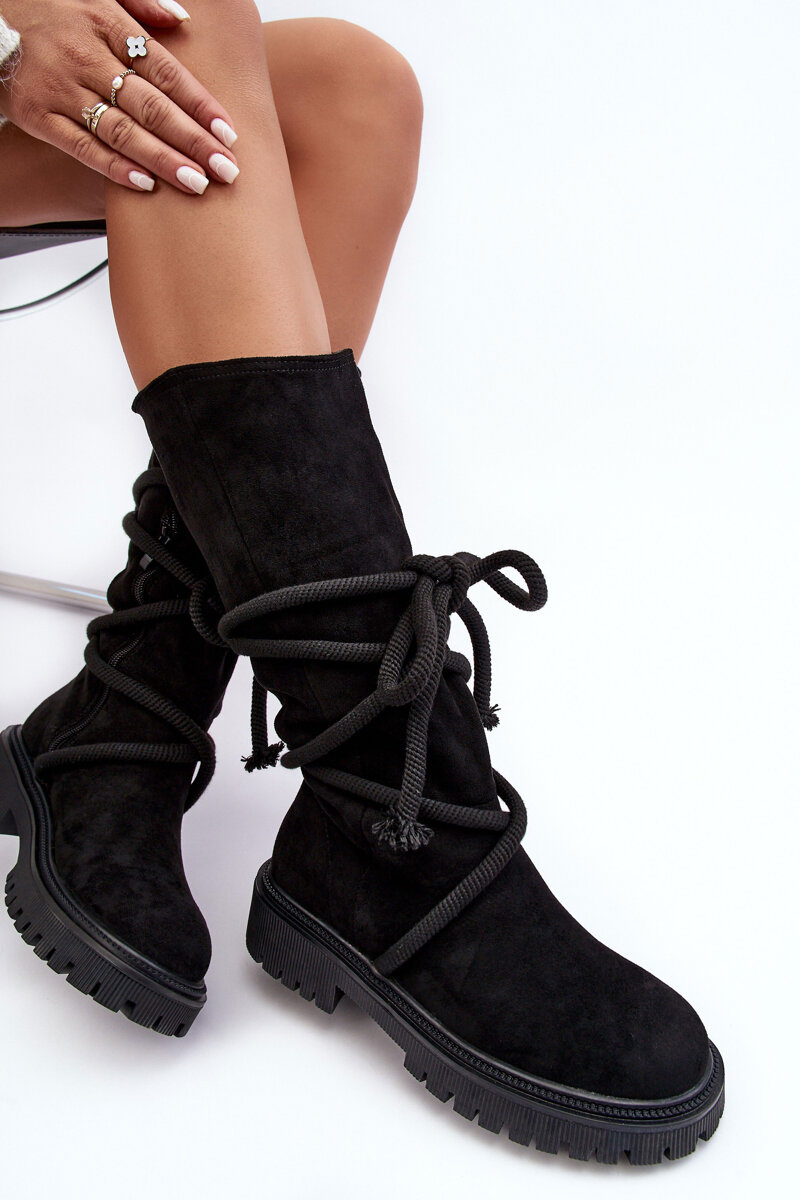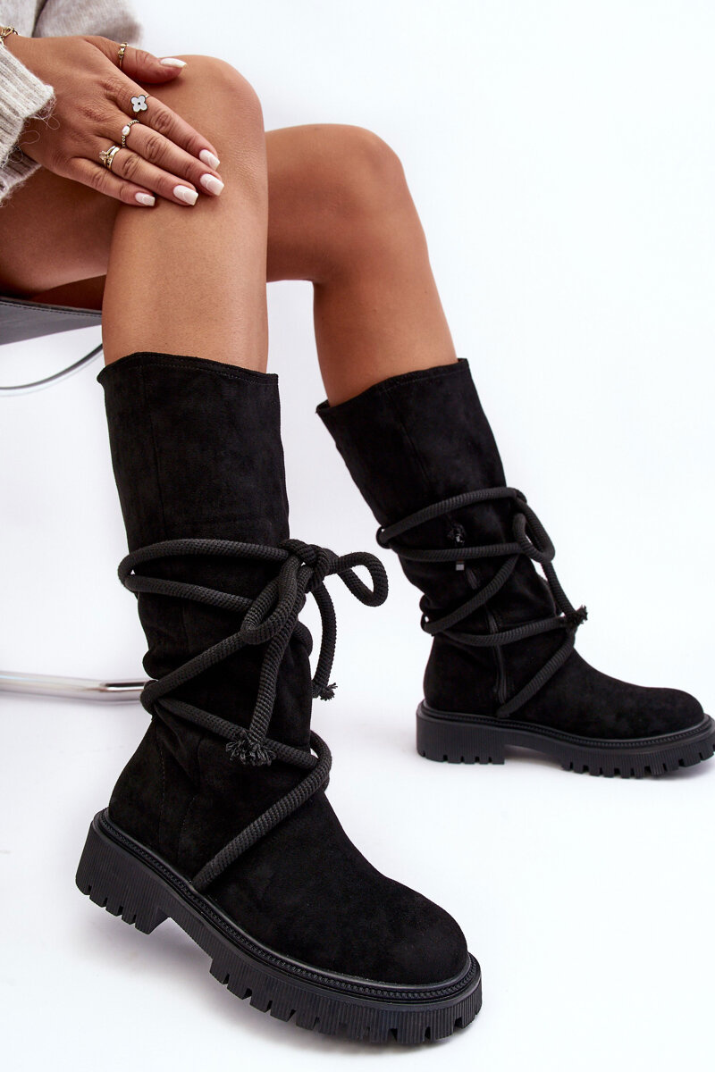 Dámské Zamšené Kozačky S Uzavíráním Černé Tanive