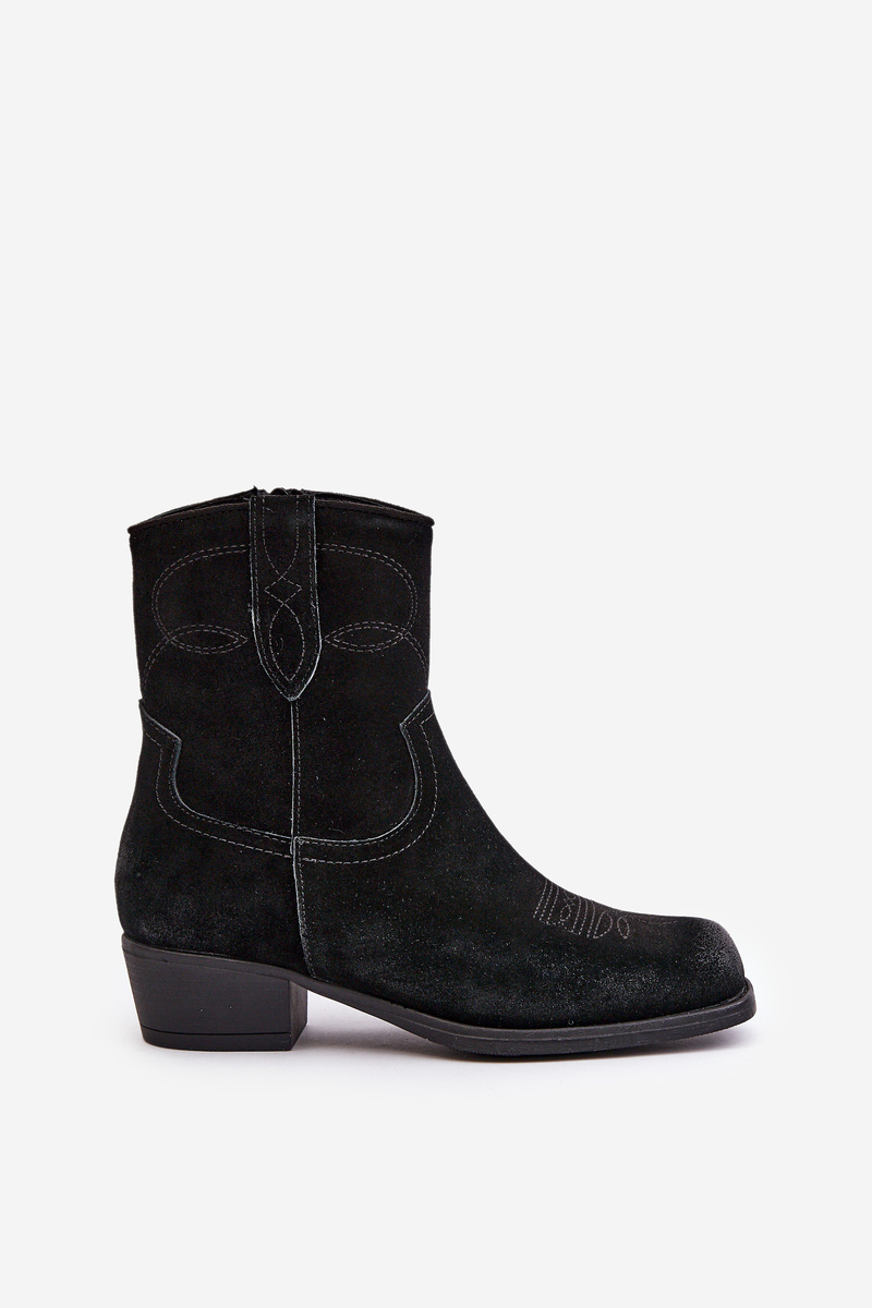 Dámské botky v cowboyském stylu. Vyrobené z přírodní semišové kůže. Uloženy na nízkém podpatku, který zajišťuje stabilitu při každém kroku. Tento model se vyznačuje čtvercovými špičkami a prošíváním na svršku. Zapínají se na zip. Zateplené příjemným na dotek obuvnickým materiálem, což zajišťuje teplo v chladnějších dnech. Extrémně módní styl, který bys měla mít ve své podzimní a zimní garderobě! Při výběru velikosti se řiďte tabulkou velikostí.