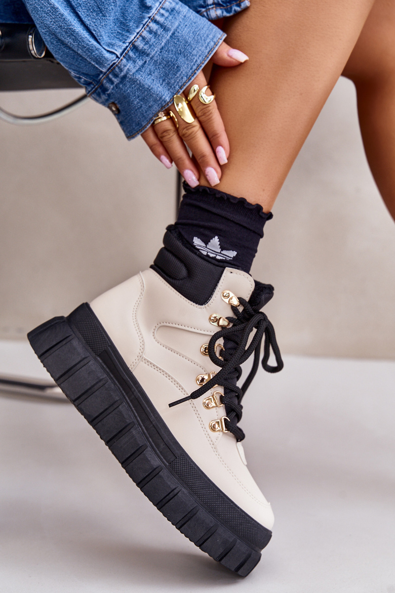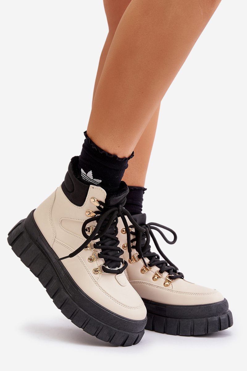 Dámské Zateplené Botky Traperky Na Platformě Béžové Jelenia