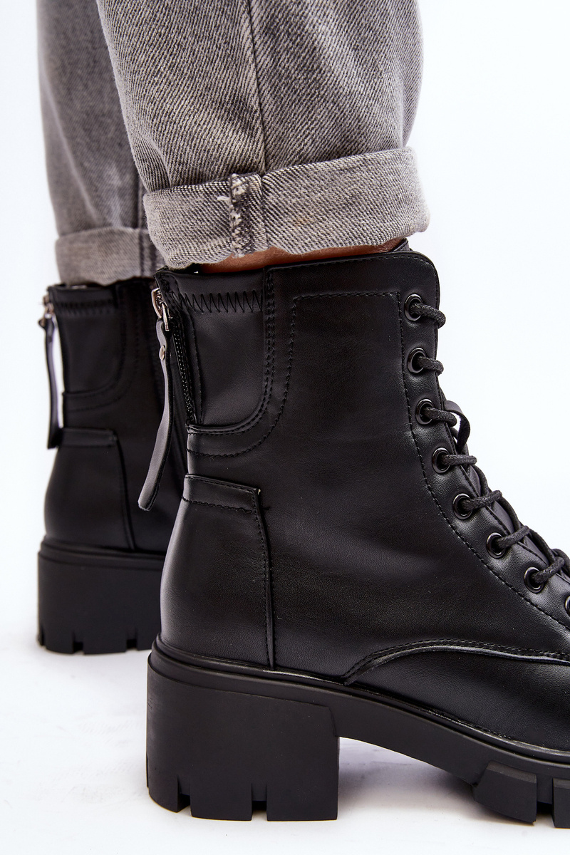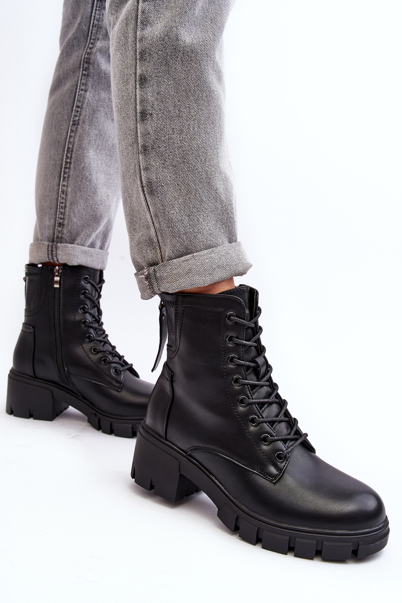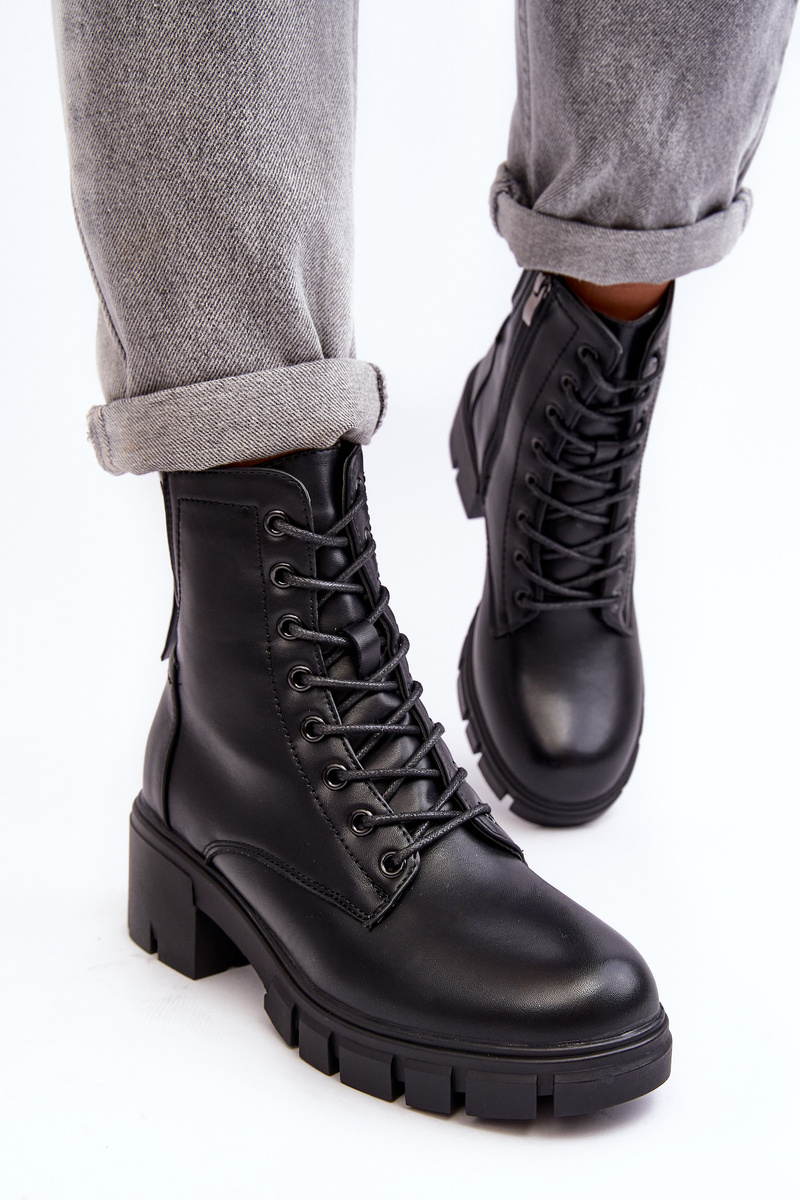 Dámské botky na plochém podpatku. Model je šněrovací a má navíc zip. Špičky jsou zaoblené a patka je zesílená. Vnitřek je zateplený obuvním kožíškem, takže chladné dny už nebudou tak strašné! Na zadní straně botky je navíc krátký zip. Tento model by měl být váš!
