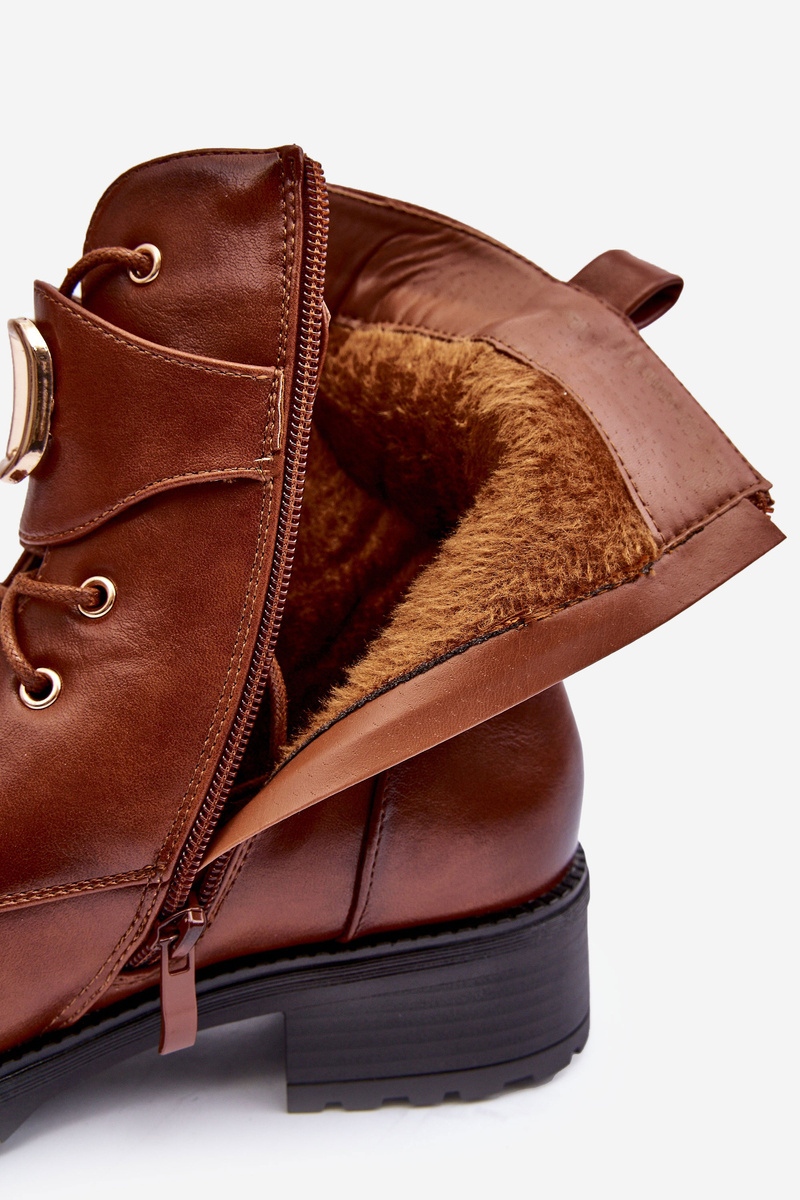 Dámské zateplené boty Workery se zlatou sponou hnědé Vera