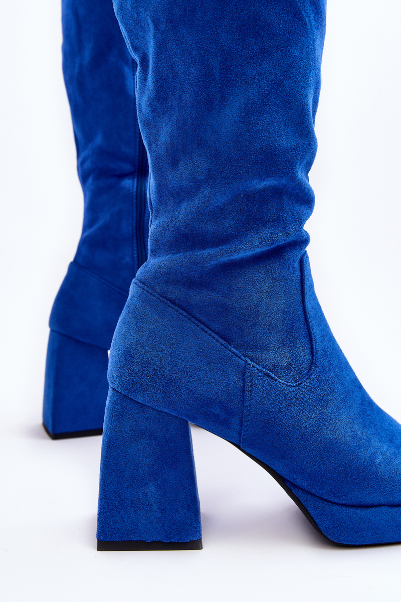 Dámské zateplené kozačky na masivním podpatku modré Layala