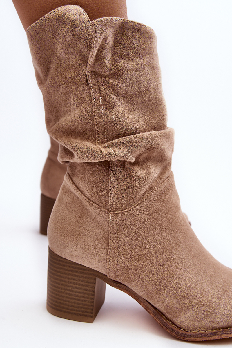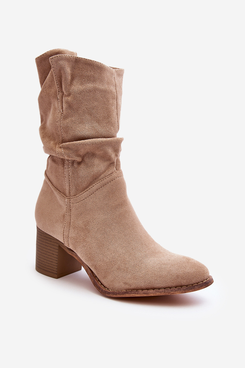 Dámské zateplené kozačky se zvrásněným svrškem na sloupku béžové Shavy