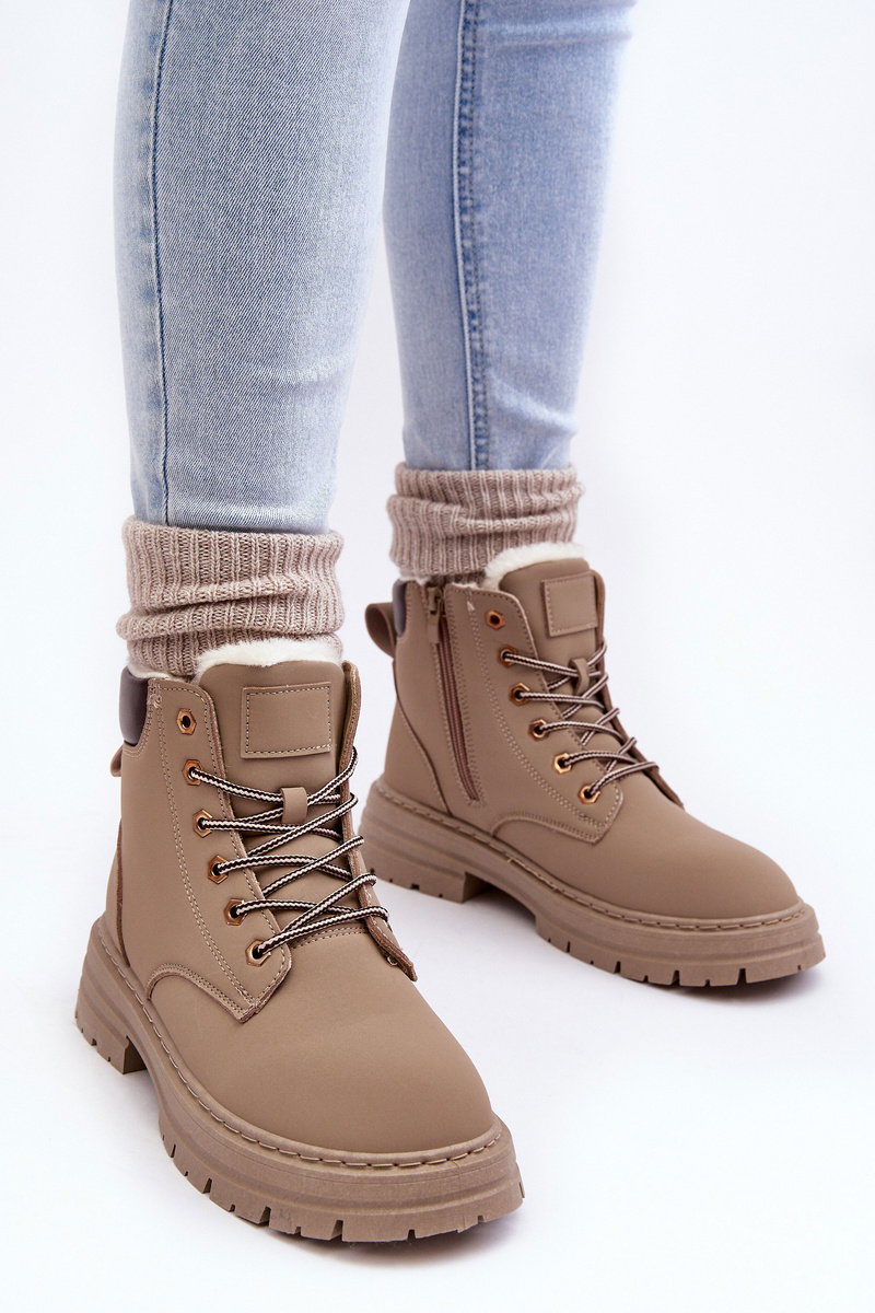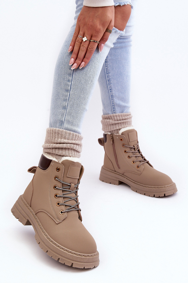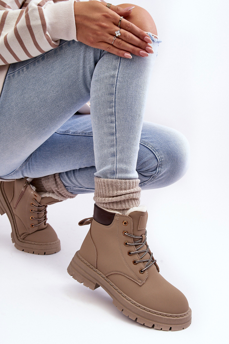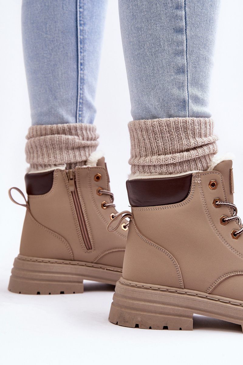 Dámské zateplené kožešinové trapery tmavě béžové Fenan