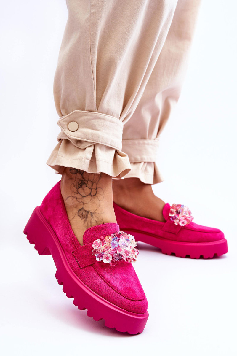 Dámské zdobené mokasíny na platformě Fuchsie Brenda