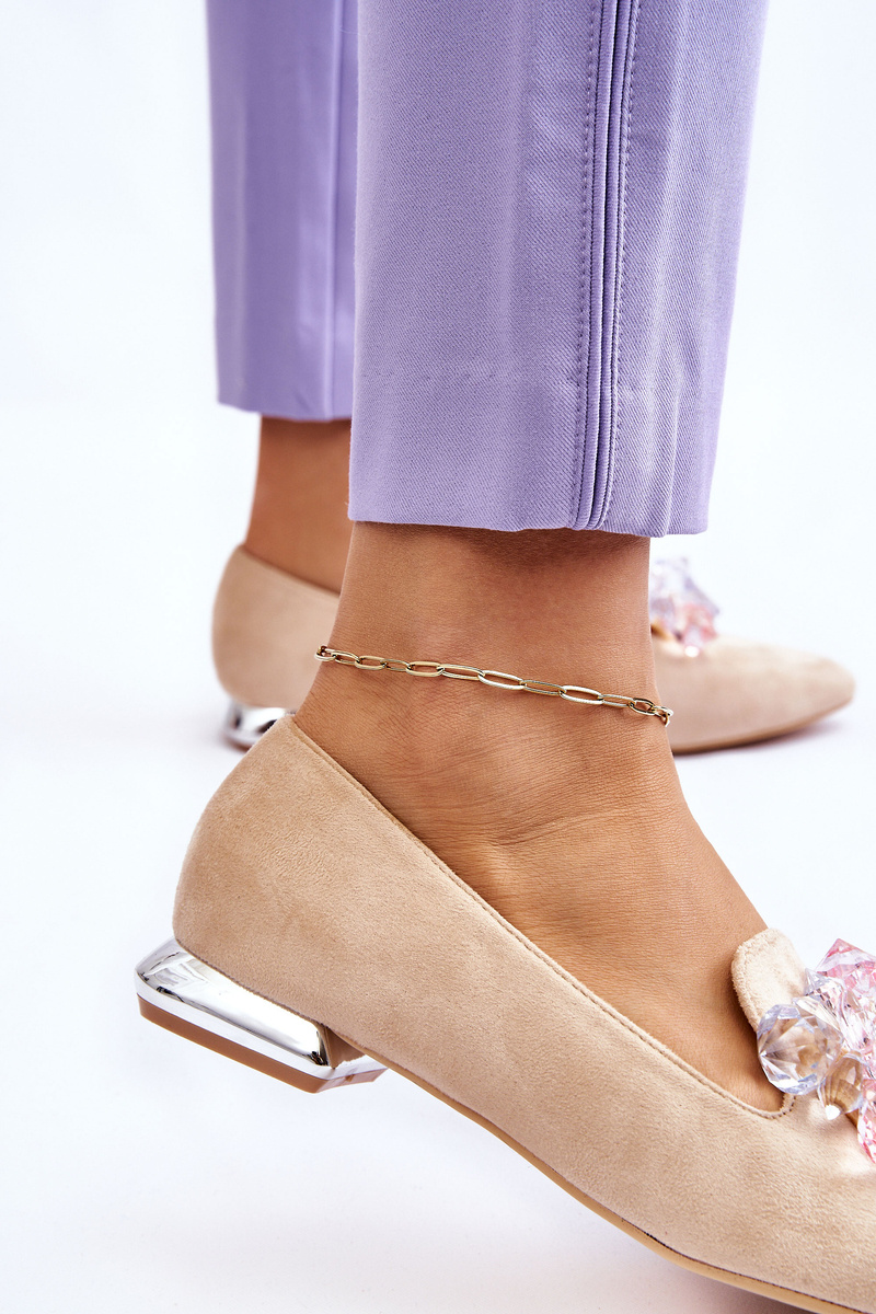 Dámské mokasíny jsou vyrobeny z na dotek příjemného ekologického semiše. Na přední straně jsou ozdobné imitace krystalů. Mokasíny byly postaveny na plochém podpatku. Podpatek je mírně vyztužený a stélka je vyrobena z eko kůže, což umožňuje pohodlné nošení obuvi. Tyto elegantní mokasíny jsou perfektním modelem pro mnoho stylů! Při výběru velikosti se řiďte tabulkou velikostí.