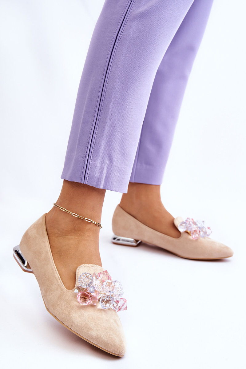 Dámské zdobené mokasíny s plochými podpatky Béžove Sloane