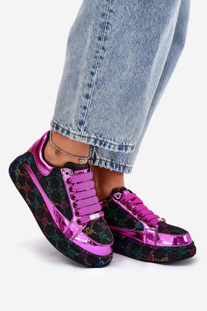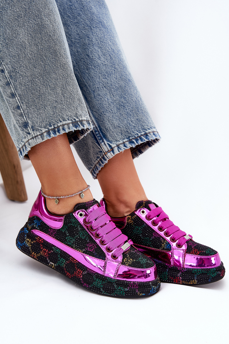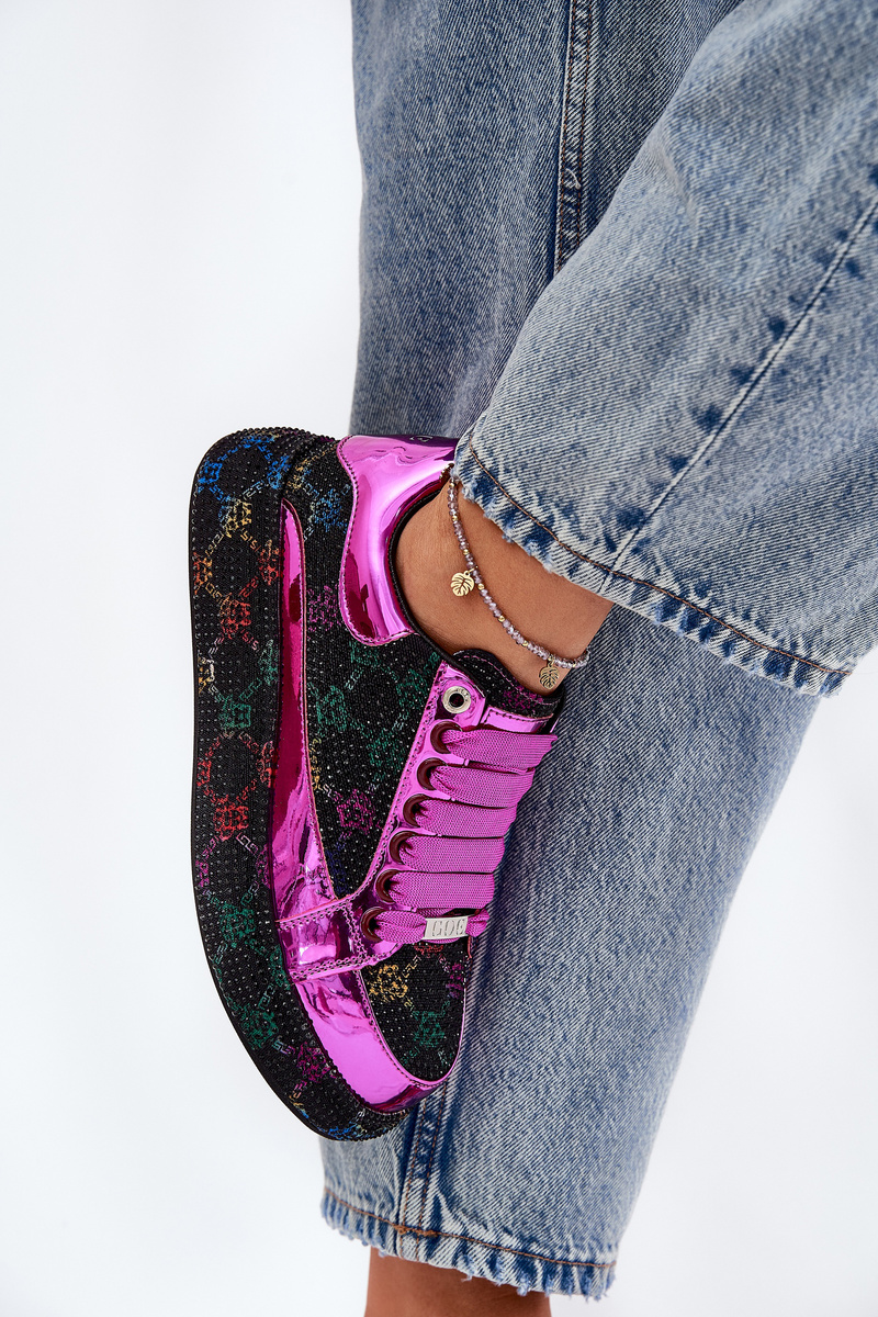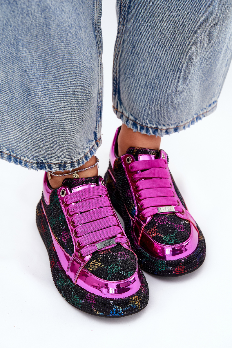 Stylové dámské sneakersy od značky GOE. Umístěné na platformě, která spojuje moderní design s módními akcenty. Ozdobené malými kamínky po celé ploše, které přitahují pozornost a dodávají botám výjimečný charakter. Tyto sneakersy jsou ideální volbou pro ty, kteří hledají originální obuv, která vynikne v každém outfitu, spojující pohodlí s jedinečným stylem. Při výběru velikosti se řiďte tabulkou velikostí.