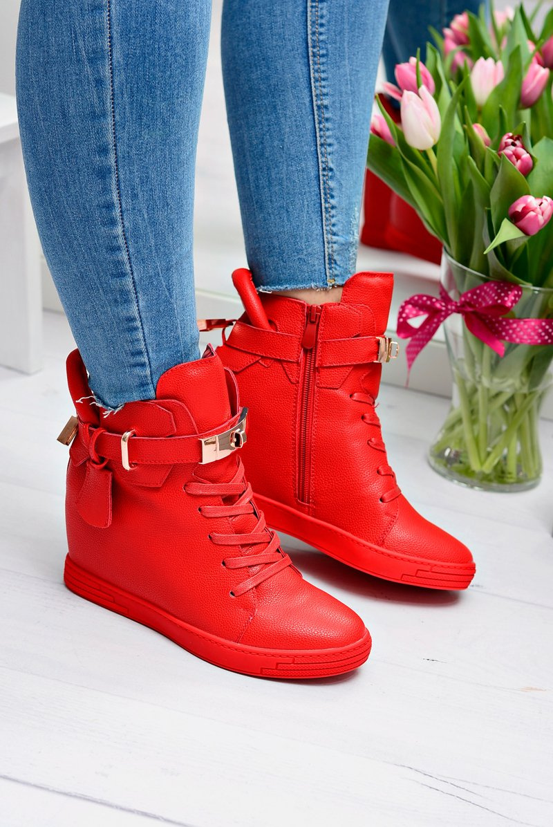 Damskie Czerwone Sneakersy Złota Kłódka Koturn Hudgens