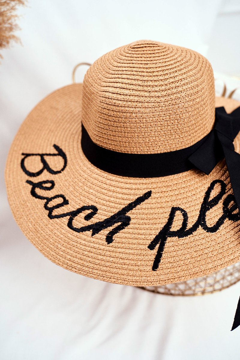 Dámský Klobouk 100% Papír Camel s Velkým Okrajem Beach Please