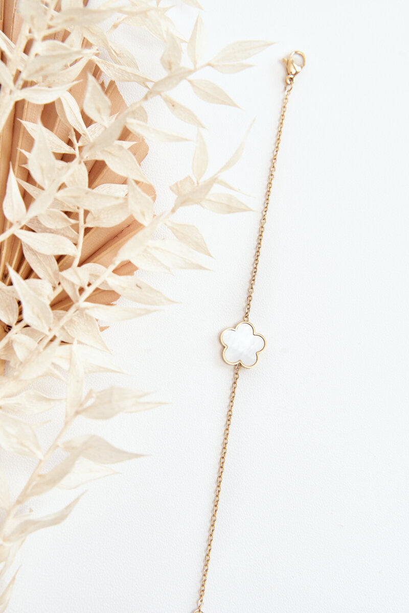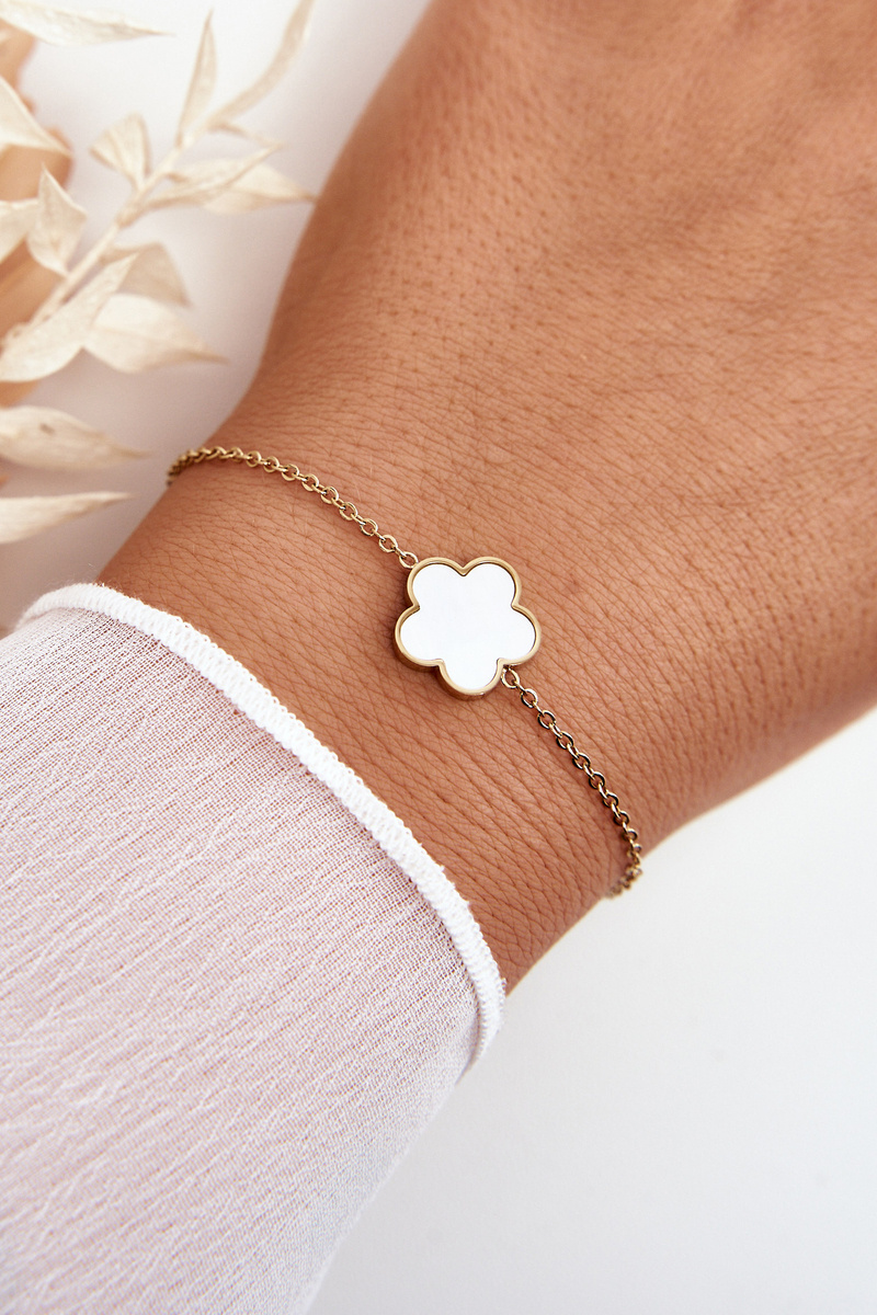 Nádherný náramek na tenkém řetízku celebritního typu. Byl vyroben z nerezové oceli. Je délkově nastavitelná. Uprostřed je ozdoba v podobě barevné květiny. Tento typ šperku je skvělým doplňkem ke stylingu nejen každodenního, ale i elegantnějšího. Tento model má klasické zapínání. Nezapomeňte se také podívat na další modely šperků dostupné v naší nabídce!