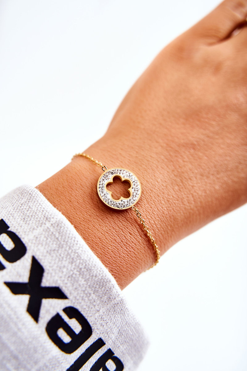 Dámský náramek celebrit květina a kamínky zlato