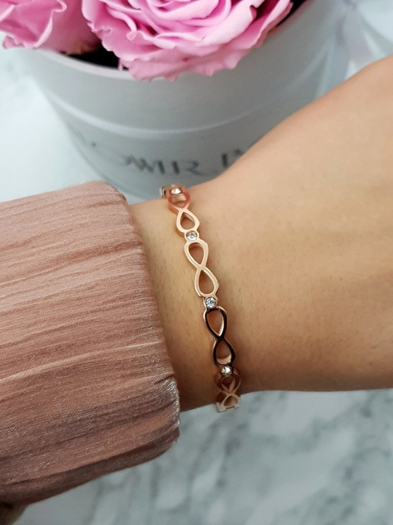 Dámský Náramek Ocel se zirkonem nekonečno růžový zlatý Glam