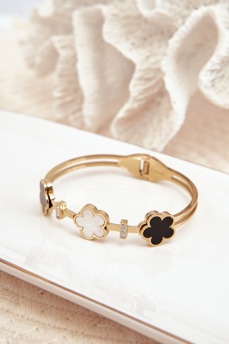 Dámský náramek vyrobený z vysoce kvalitní nerezové oceli je skutečnou perlou ve vaší šperkovnici. Praktické zapínání vpředu zajišťuje, že ho nasazování a sundávání jsou mimořádně snadné a pohodlné. Ozdobený květy dodává jemnost každému stylu.