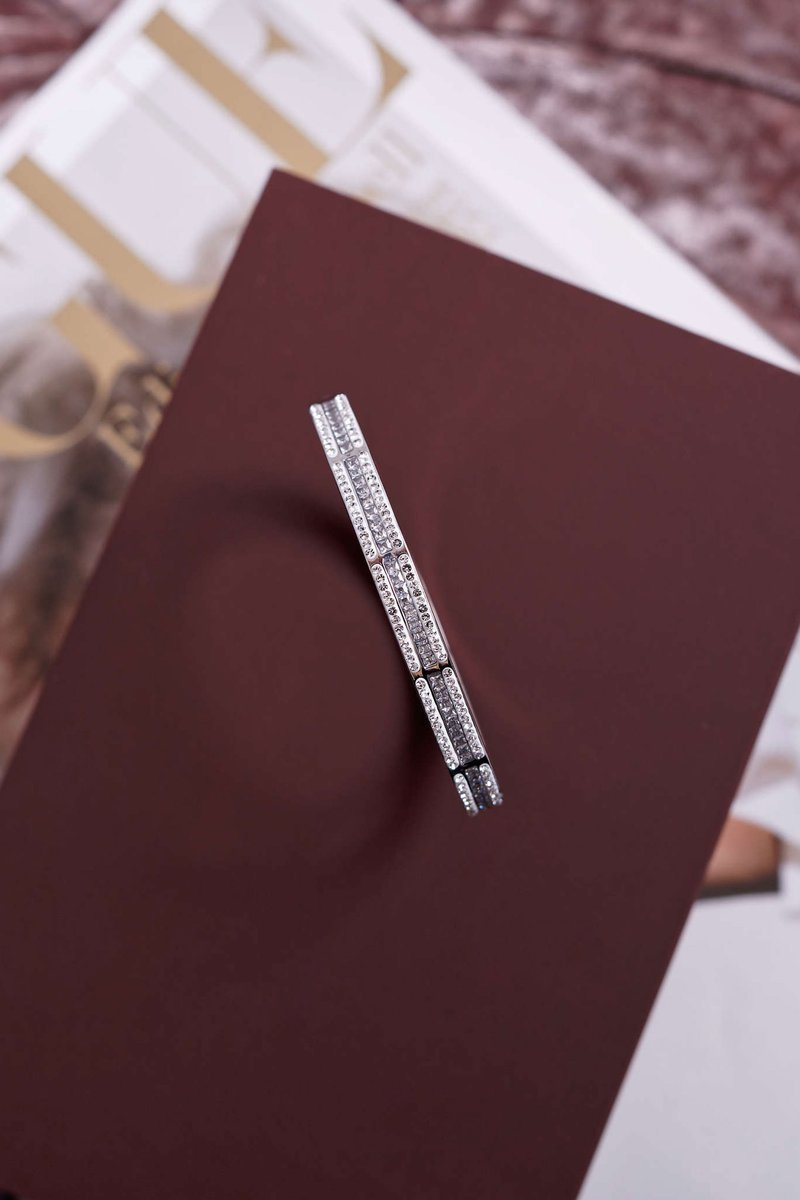 My ženy milujeme lesk. Nádherný náramek z nerezové oceli s krásným vzorem a malými, měnícími se zirkony. Náramek lze roztáhnout a tím se usnadňuje nasazení. Podívejte se na celou sbírku šperků a vyberte si svůj oblíbený doplněk.