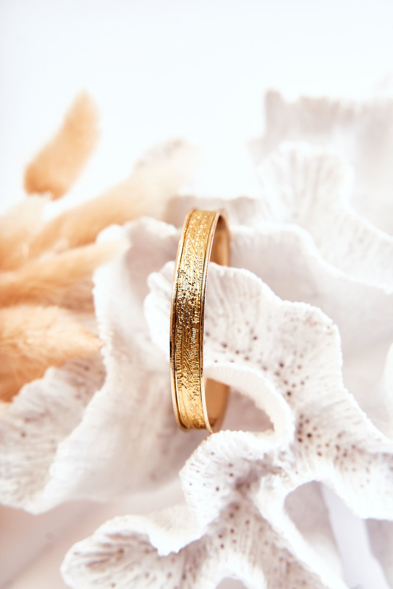 Každý styling by měl být obohacen o doplňky v podobě šperků. Nádherný náramek je vyroben z kovu s ražbou. Jde o nazouvací model, který nemá zapínání, díky čemuž je nazouvání ještě jednodušší. Tento model je ideální pro elegantní i ležérní stylizace. Prohlédněte si celou naši kolekci šperků a vyberte si svůj oblíbený doplněk.