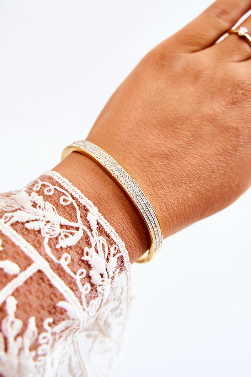 Dámský ocelový náramek s ozdobným kubickým zirkonem zlata