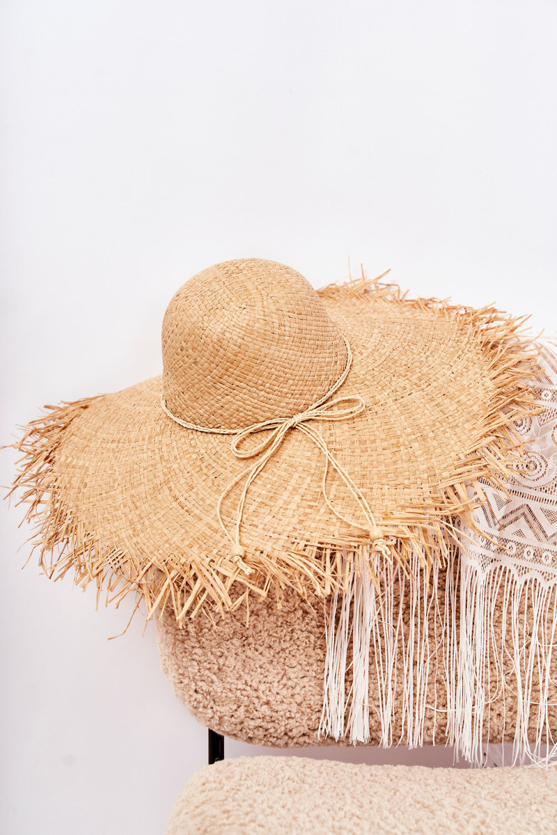 Lehký dámský slaměný klobouk, ideální pro slunečné dny. Výrobek je vyroben ze 100% slámy. Klobouk má slaměný pásek s mašličkou na konci které jsou ozdobné korálky. Okraje kruhového objezdu jsou zubaté. Čepici využijete na dovolené v horkých dnech. Nezapomeňte se podívat na celou naši kolekci klobouků!