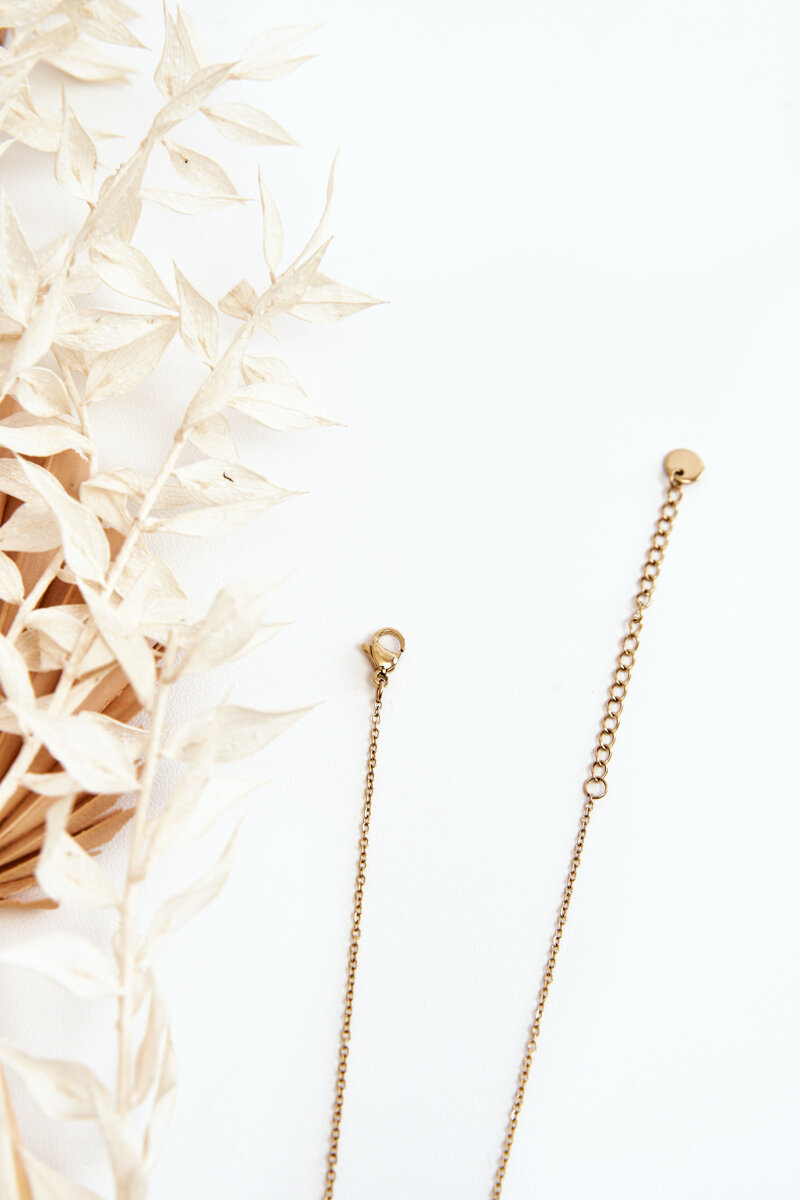 Tenký dámský řetízek s kotníčkovou vazbou je vyroben z nerezové oceli. Je délkově nastavitelná a zapíná se na karabinu. Uprostřed je kříž s tryskami imitujícími zirkony. Tento řetěz musíte mít!