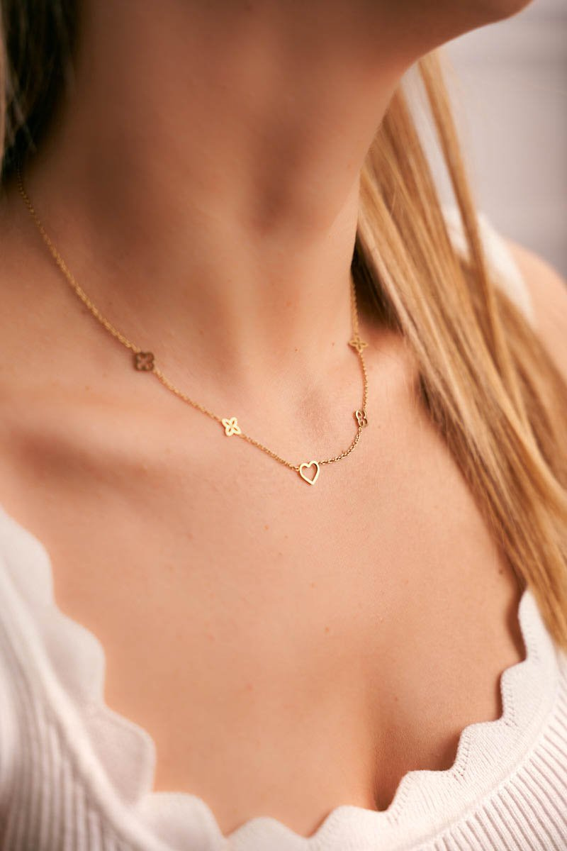 Dámský Zlatý Náhrdelník Čtyř Lístek Srdce Sweetie