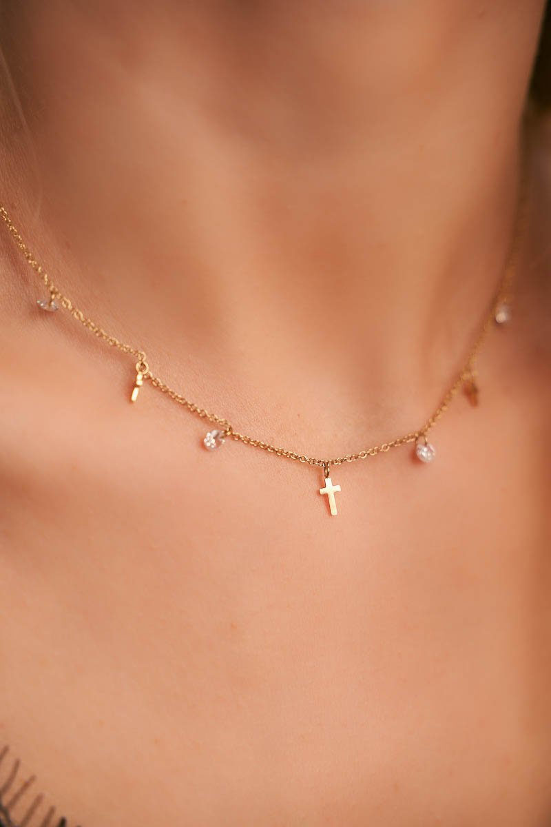 Dámský Zlatý Náhrdelník Kamínky Kříže Katie