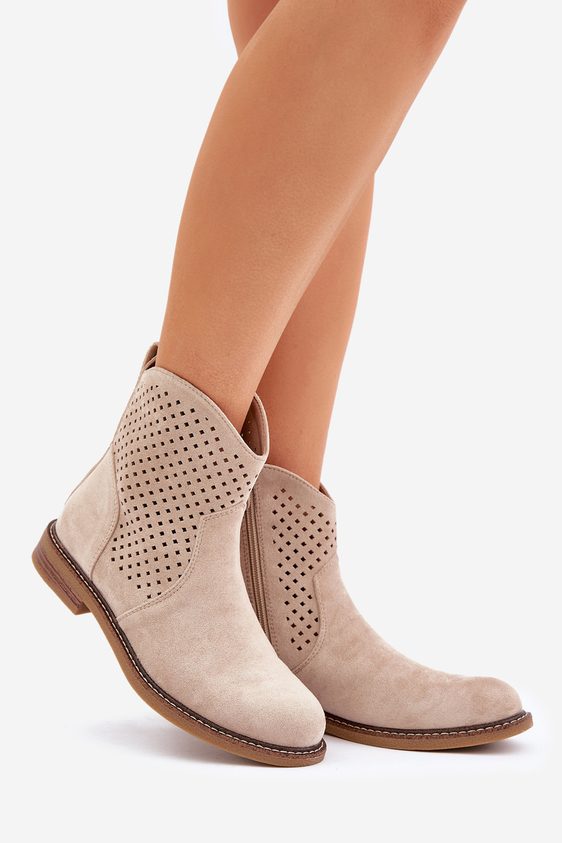 Děrované boty na plochém podpatku světle béžové Zinollia