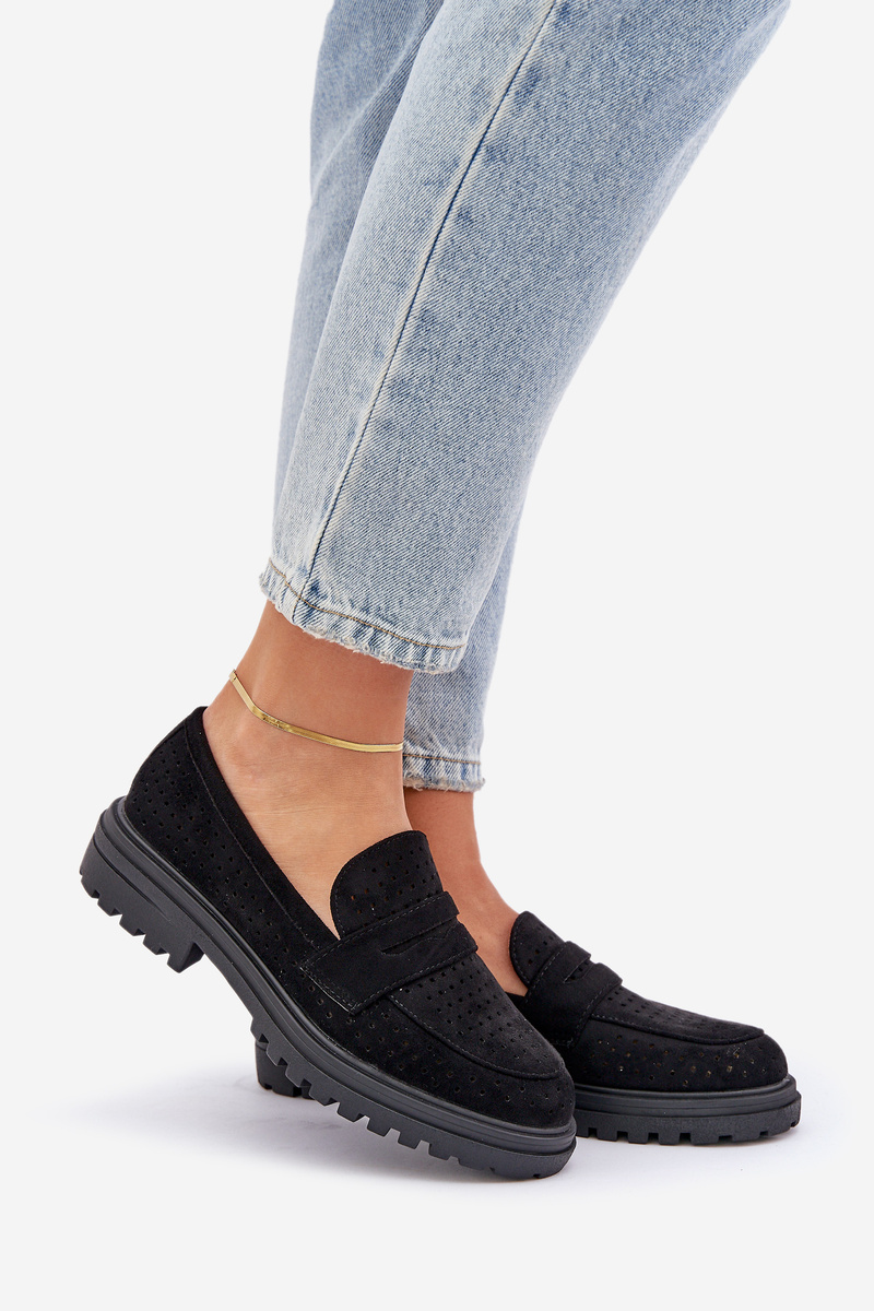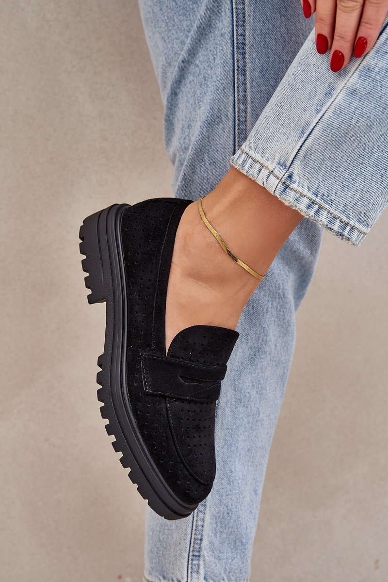 Dámské mokasíny z eko semiše. Umístěné na plochém podpatku, což zajišťuje pohodlí po celý den. Zaoblené špičky jim dodávají klasický vzhled. Tento model je nejen stylový, ale také funkční díky perforovanému svršku, který umožňuje noze dýchat. Tyto mokasíny se skvěle hodí jak k běžným, tak k elegantním outfitům! Při výběru velikosti se řiďte tabulkou velikostí.