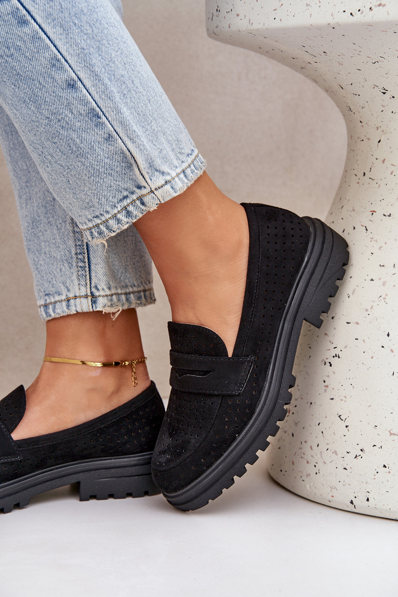 Děrované mokasíny na plochém podpatku černé Inestelle