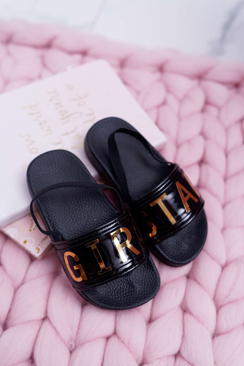 Dětská Nazouváky Dívčí se Slovy Girl Star Černé Bambi
