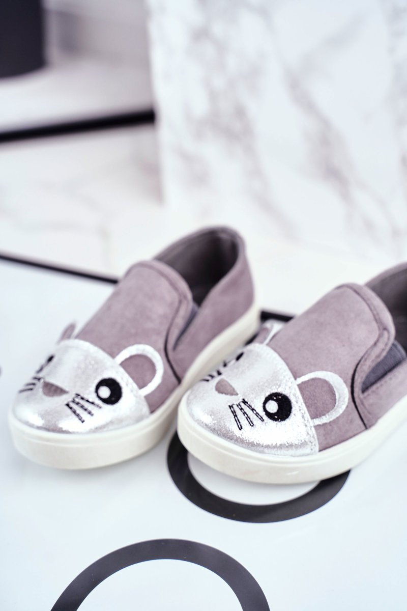 Dětská Obuv Tenisky Slip On s Myší šedé Candys