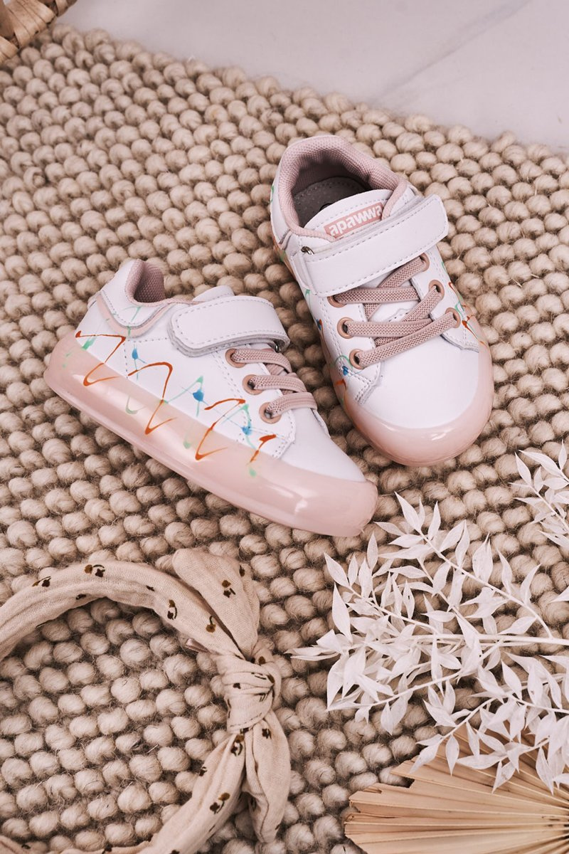 Dětská sportovní obuv se zapínáním na suchý zip. Boty mají průhlednou podrážku se zabudovanými LED světly. Boty jsou vyrobeny z vysoce kvalitní ekologické kůže. Mají měkkou koženou stélku. Nezapomeňte se podívat na celou naši kolekci dětské obuvi. Při výběru velikosti použijte tabulku velikostí.
