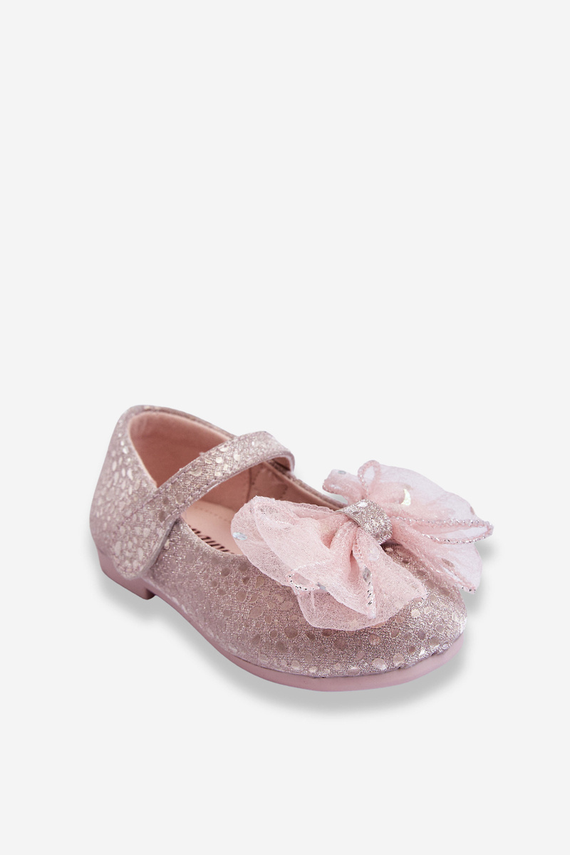 Dětské balerínky s mašlí a třpytkami na suchý zip Stříbrno-růžová Elisa