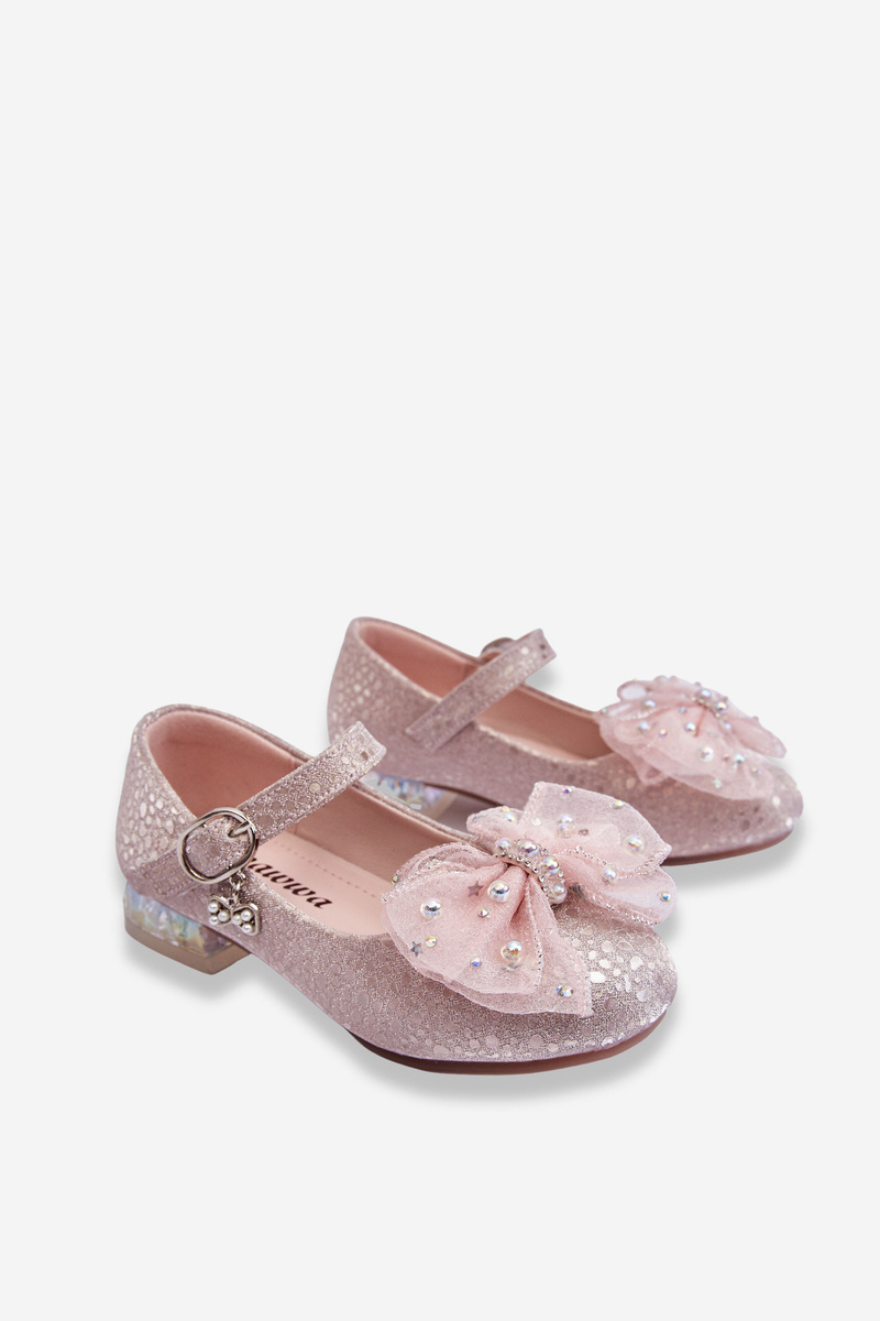 Dětské balerínky s mašlí na suchý zip stříbrno-růžová Nicola