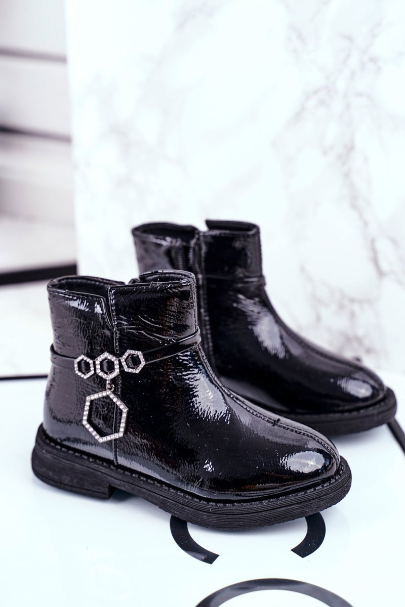 V chladných dnech stojí za to postarat se o pohodlnou obuv pro naše děti. Jedním z návrhů jsou tyto skvělé boty. Svršek je vyroben z lakované ekologické kůže, která skvěle doplní styl našich nejmladších fanoušků módy. Snadné navlékání díky zipu všitému na boku. Uvnitř boty najdete koženou profilovanou stélku, která v kombinaci s tuhým počitačem paty zaručí pohodlí na nejvyšší úrovni. Módní boční dekorace v podobě třpytivých zirkonů. Při výběru velikosti použijte tabulku velikostí.