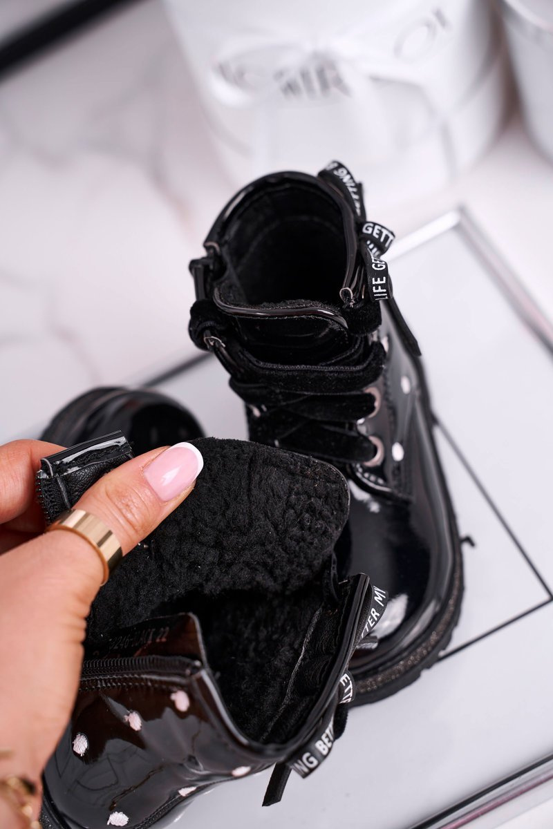 Není nic krásnějšího, než si náš malý užívat nové boty. A určitě se jim budou líbit tyto krásné lakované boty! Vnitřek bot je pokryt deku na boty, která zaručí teplo v každé situaci. Šněrování se stuhou, malou mašličkou na boku a bílými vyšívanými tečkami - jsou úžasné <3 Snadněji se bude navlékat na boční šitý zip. Při výběru velikosti použijte tabulku velikostí.