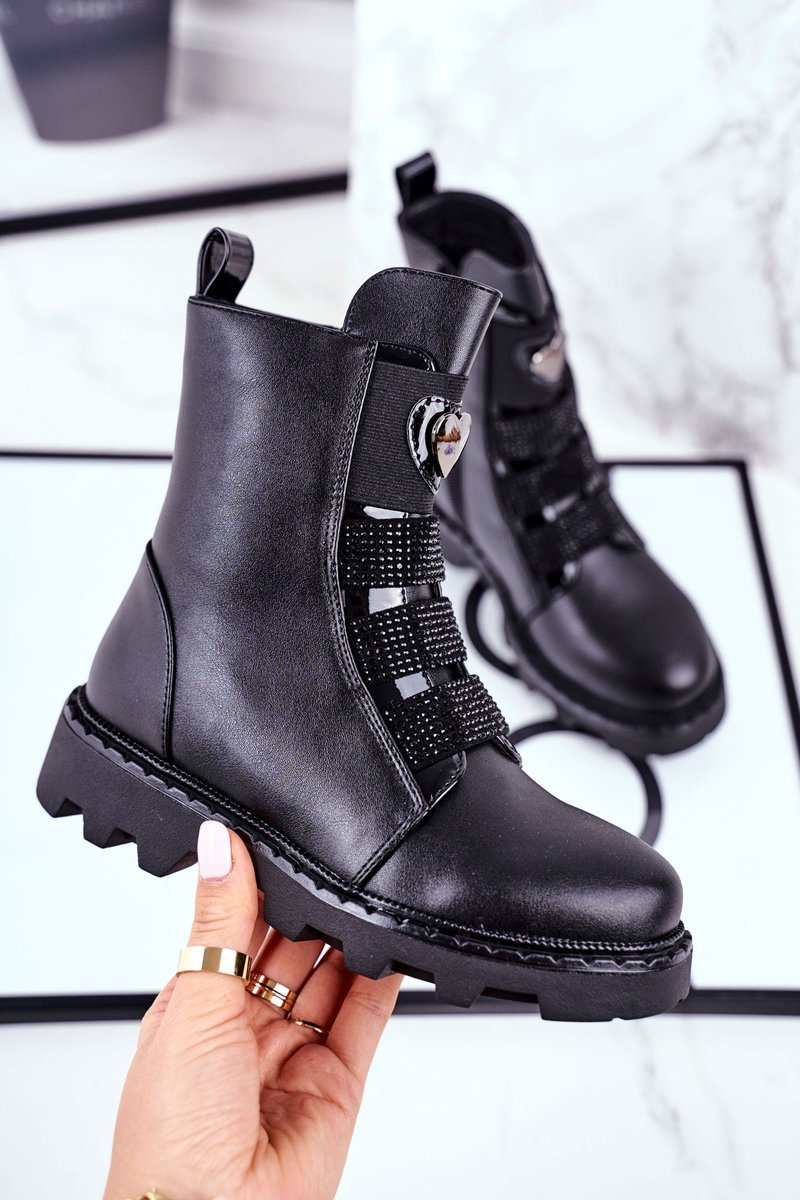 V chladných dnech stojí za to postarat se o pohodlnou obuv pro naše děti. Jedním z návrhů jsou tyto skvělé boty. Svršek je vyroben z ekologické kůže, která zaručí perfektní kombinaci s podzimní a zimní stylizací. I ty nejnáročnější módní fanoušci budou chtít tyto krásné boty. Snadné navlékání díky zipu všitému na boku. Vnitřek boty byl izolován krátkovlasou přikrývkou na boty. Tuhý počitadlo paty zaručí pohodlí na nejvyšší úrovni. Svršek zdobí elastické gumičky se zirkony a stříbrným srdcem. Při výběru velikosti použijte tabulku velikostí.