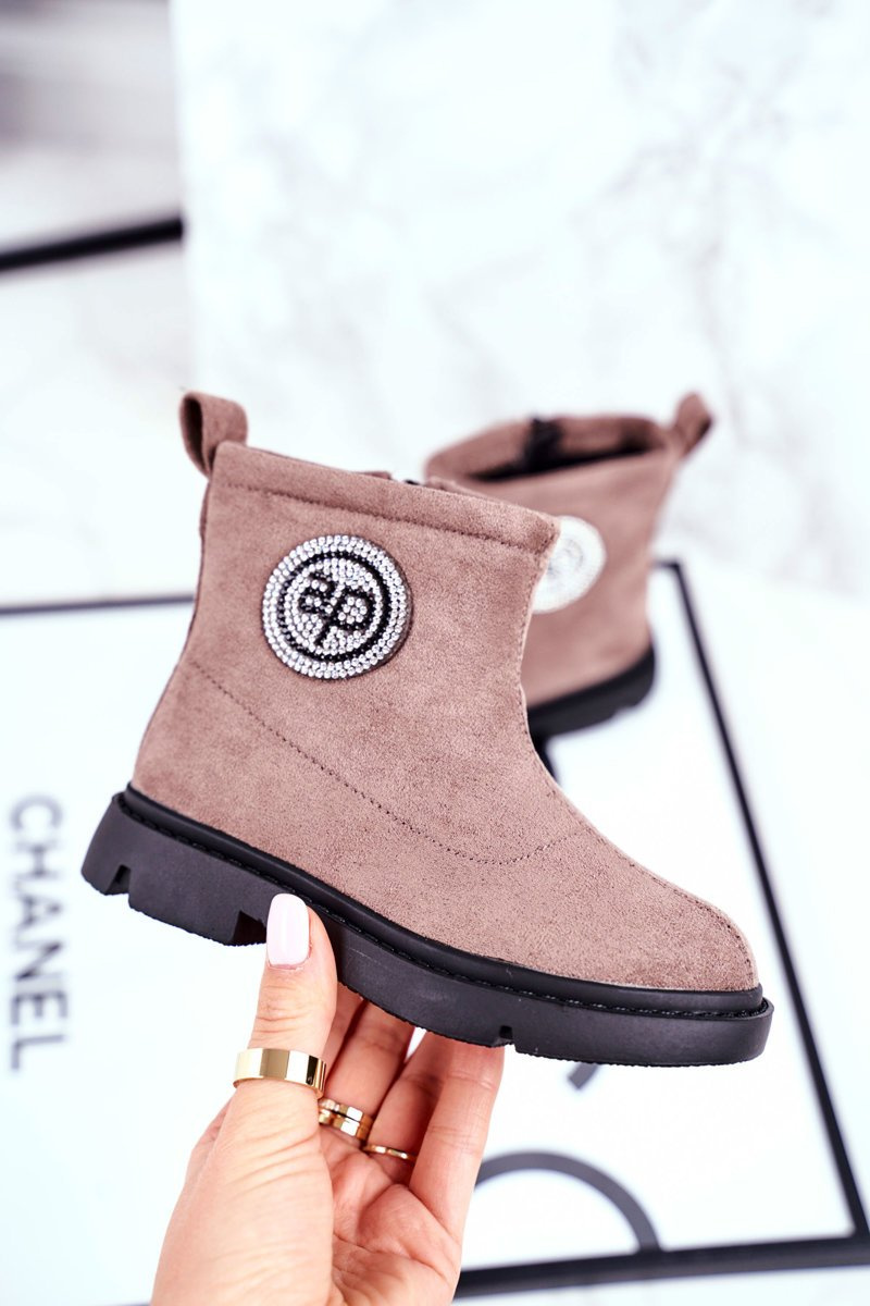 V chladných dnech stojí za to postarat se o pohodlnou obuv pro naše děti. Jedním z návrhů jsou tyto skvělé boty. Svršek je vyroben z ekologické kůže imitující semiš. Snadné navlékání díky zipu všitému na boku. Vnitřek boty je pokryt teplou a příjemnou na dotek. Určitě se podívejte na celou naši nabídku dětských bot. Módní boční dekorace v podobě třpytivých zirkonů. Při výběru velikosti použijte tabulku velikostí.