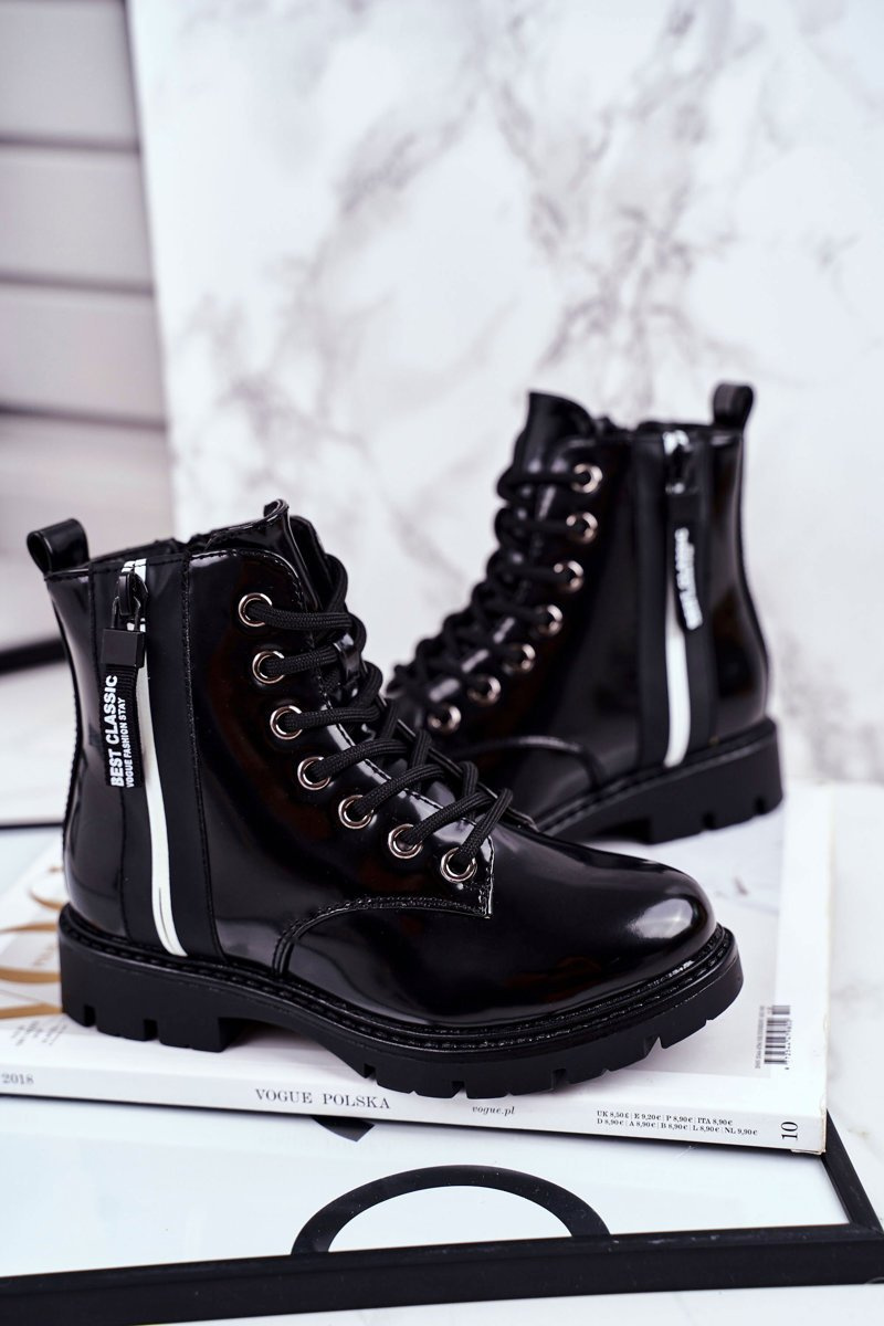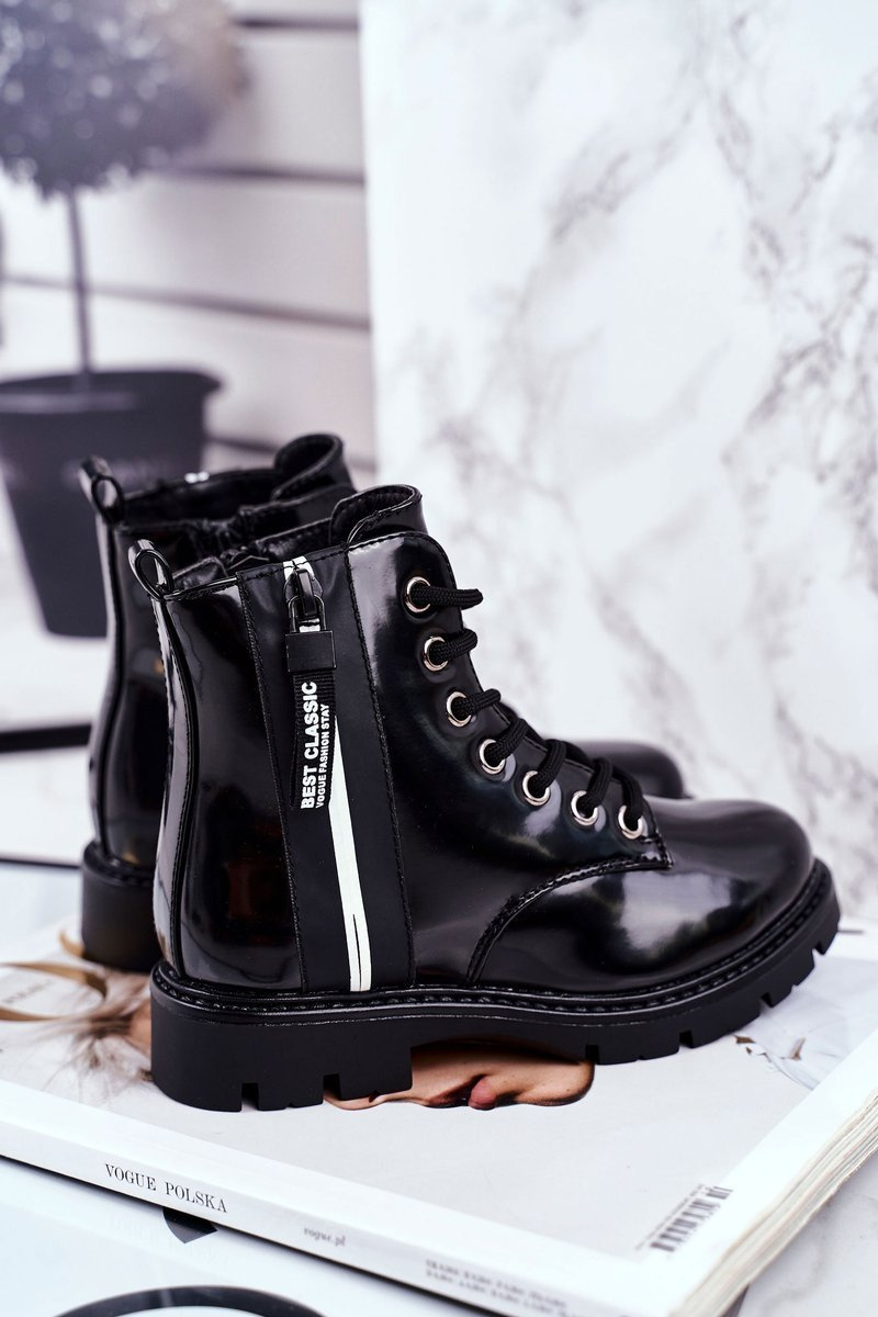 Dětské Boty zateplené Se Zipem Lakované Černé Falkon