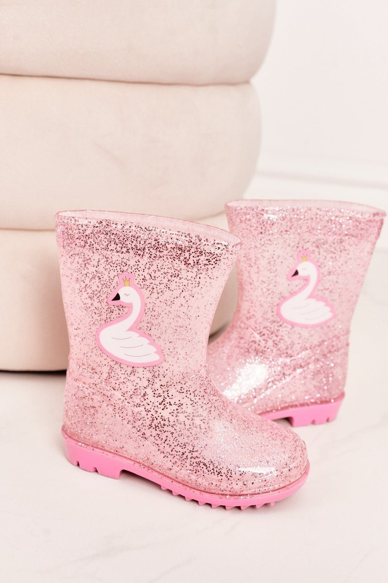 Dětské Brokátové Galoše S Labutí Růžové