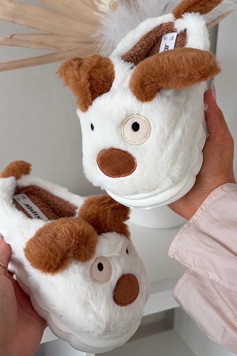 Dětské chlupaté bačkory pejskové hnědé Farnise