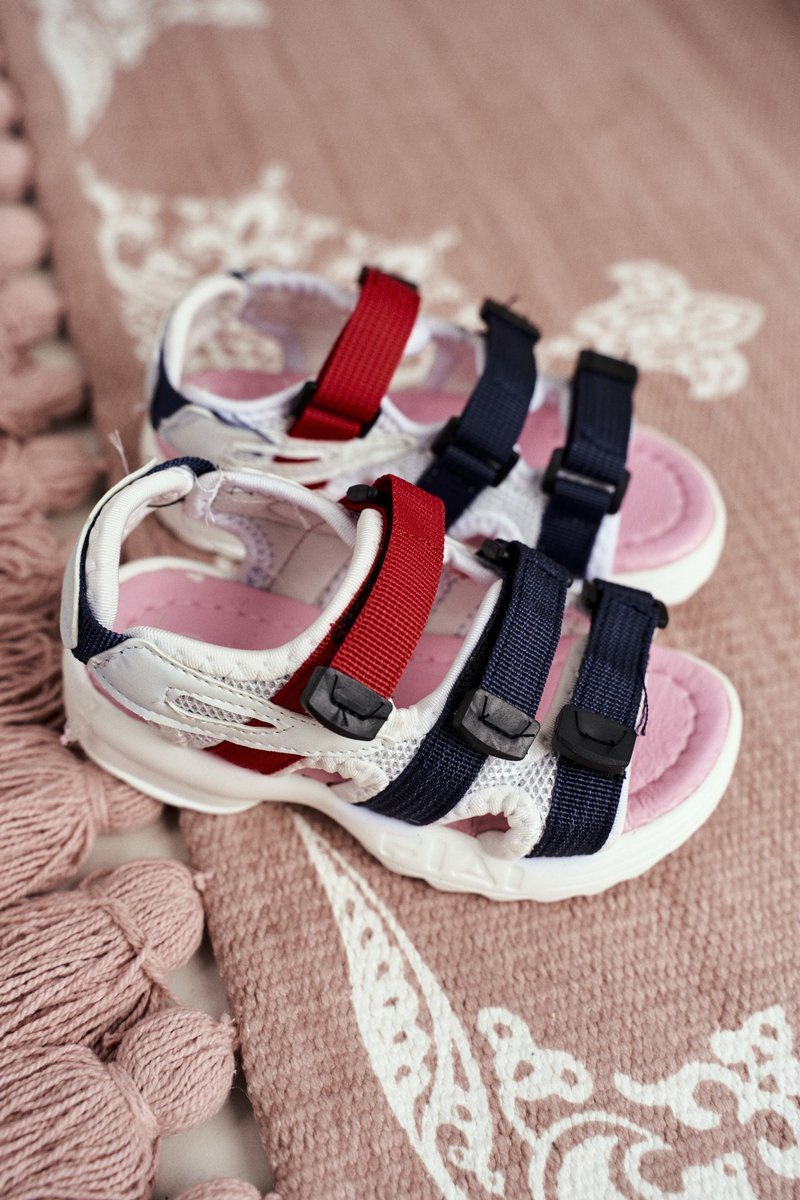 Dětské dívčí Sandály na Suchý Zip Bílé růžové Fima