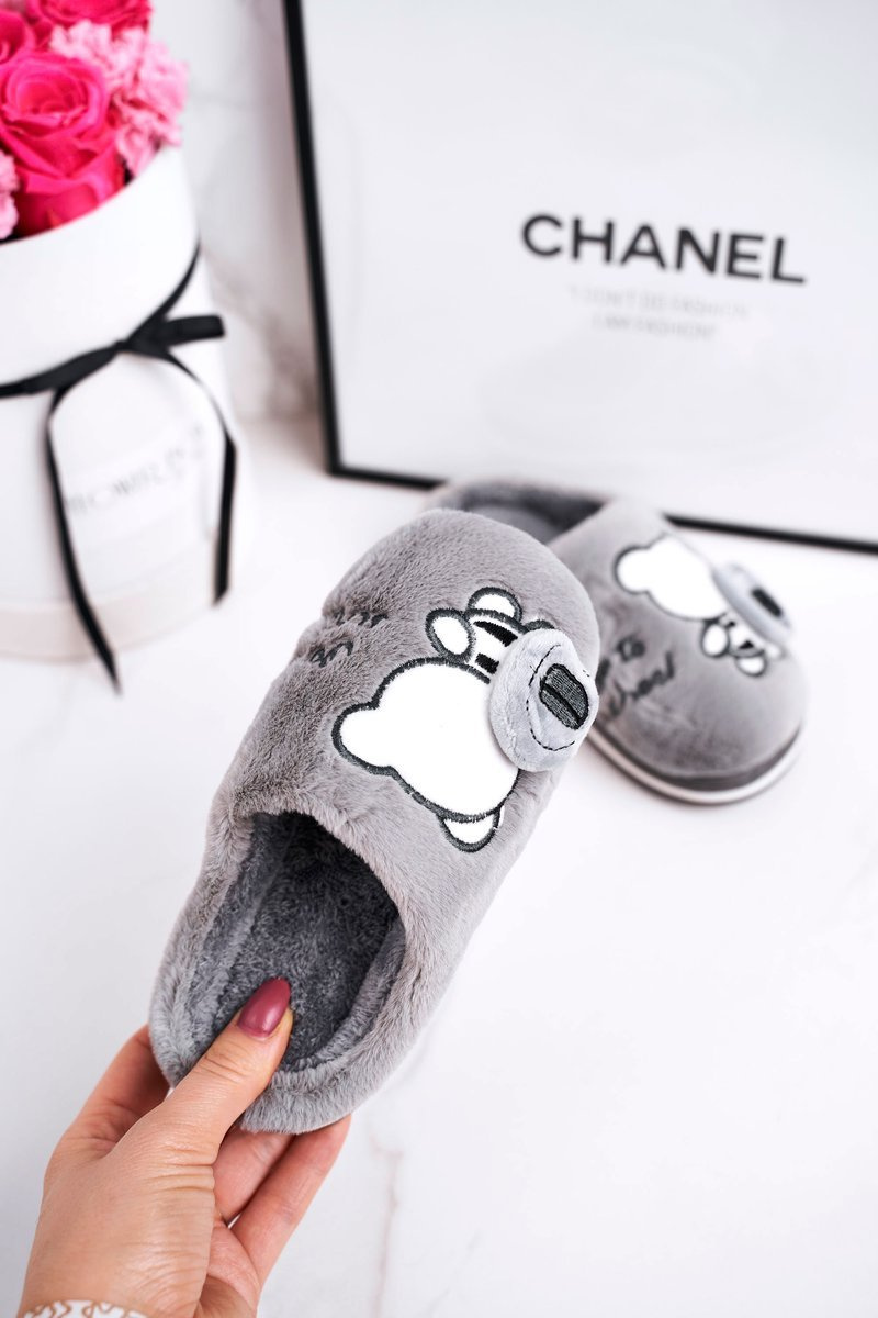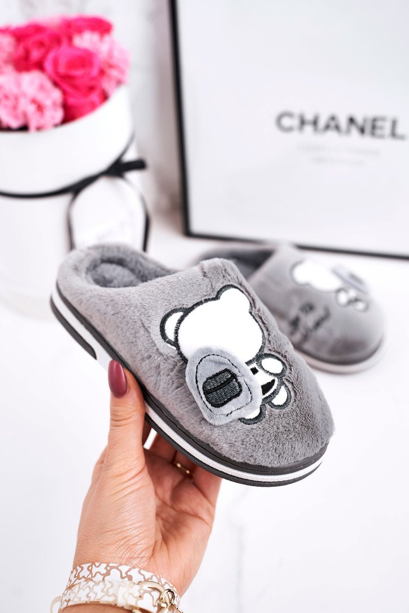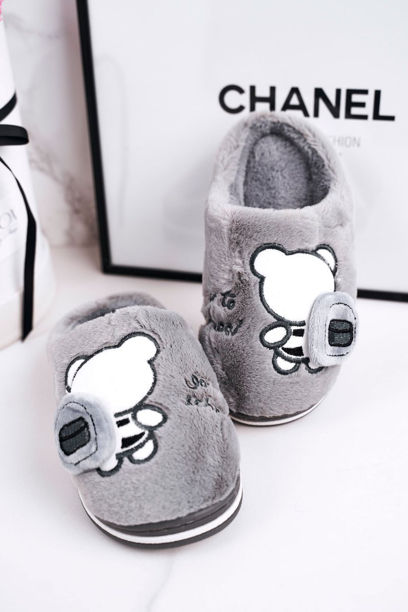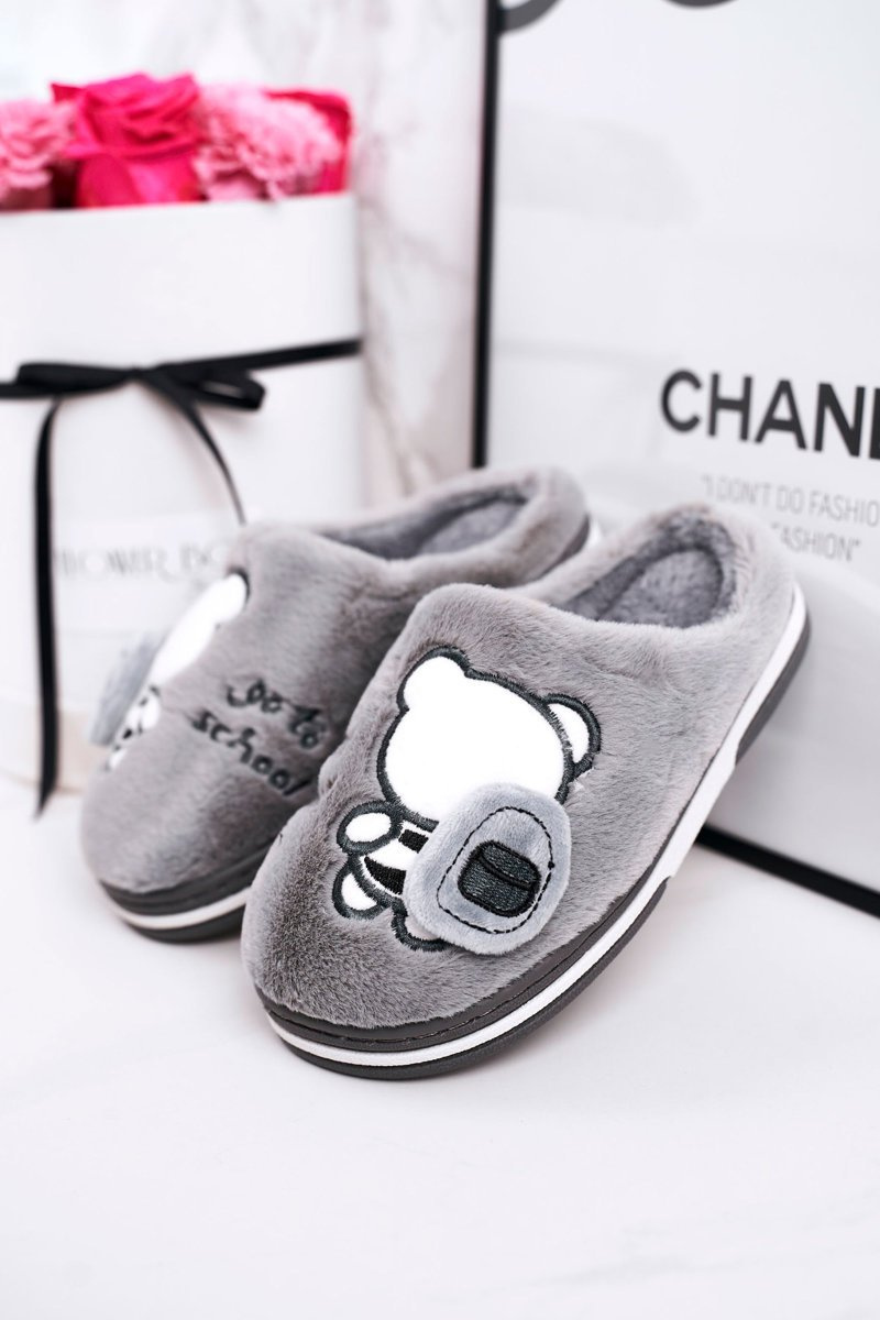 Dětské Domácí Pantofle S Medvědem šedé Go To School