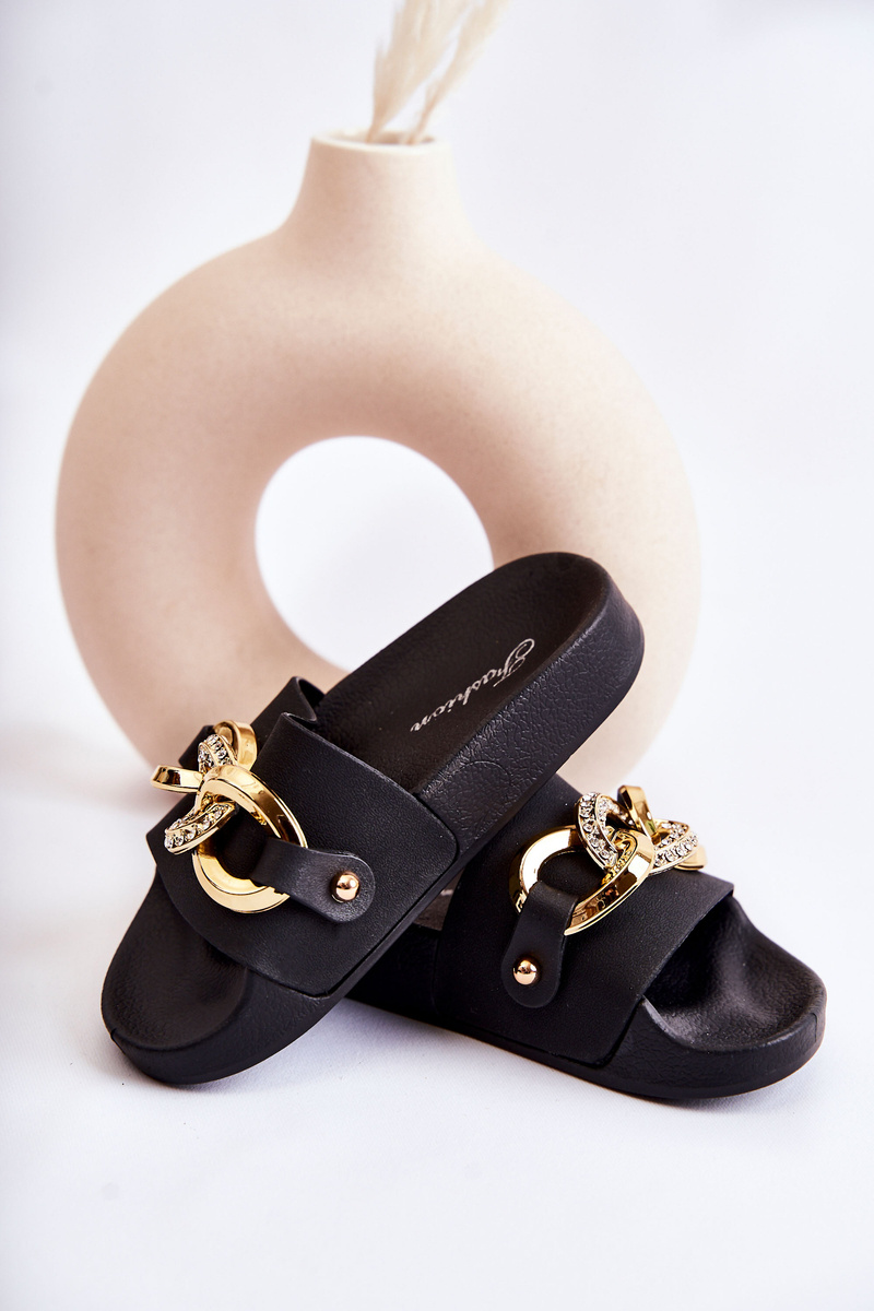 Dětské gumové pantofle s ozdobným řetízkem Černe Suzie